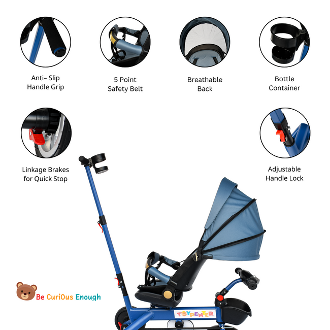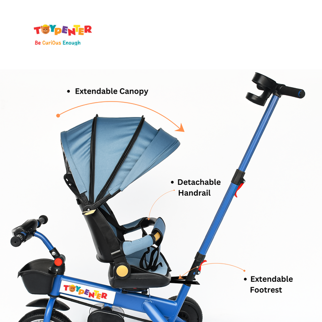 TOYPENTER 3 in 1 Baby Stroller/Kids Tricycle with Removable Canopy, Parental Adjust Push Handle Attached Bottle Holder for Kids | Boys | Girls Age 0 Months - 5 Years