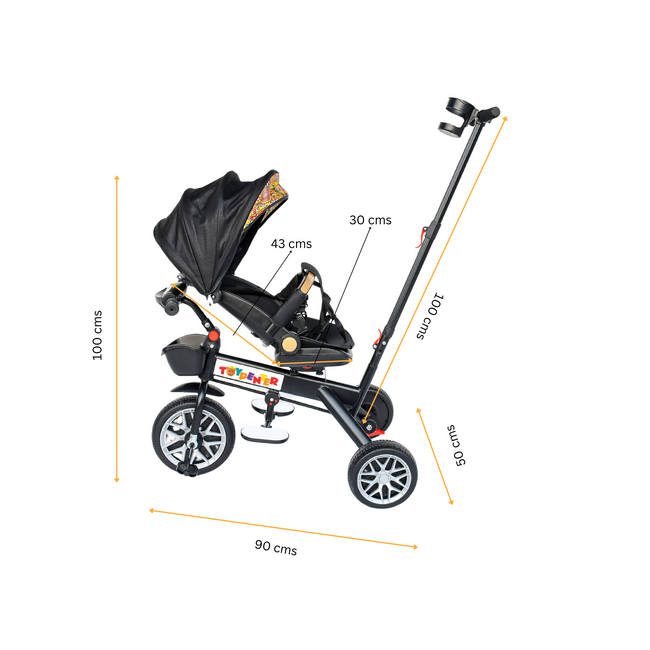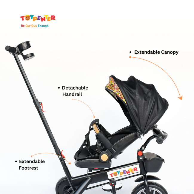 - Comfortable and Stylish: Padded seats, adjustable canopies, and vibrant designs make the tricycle both comfortable and visually appealing.