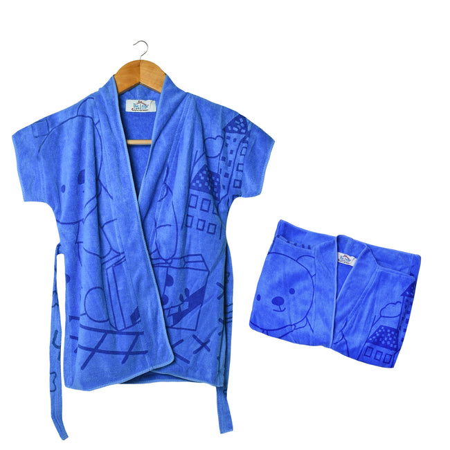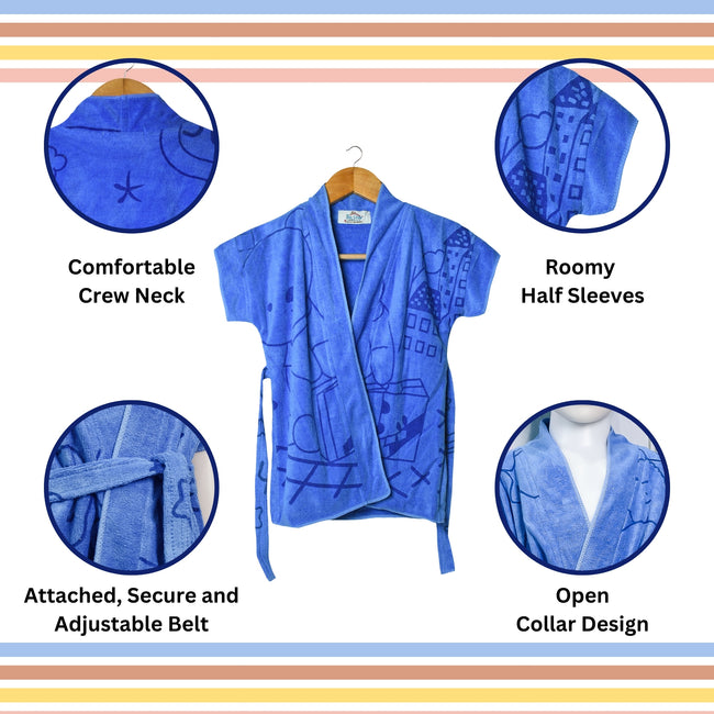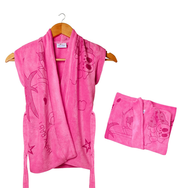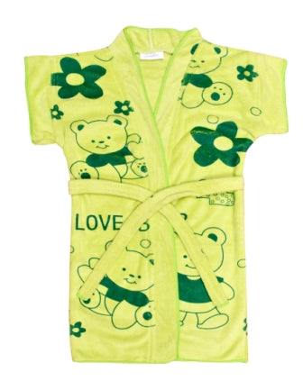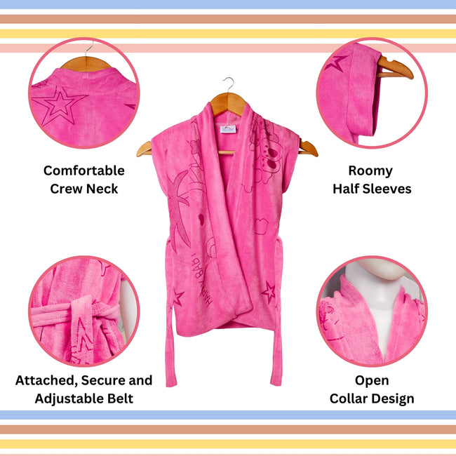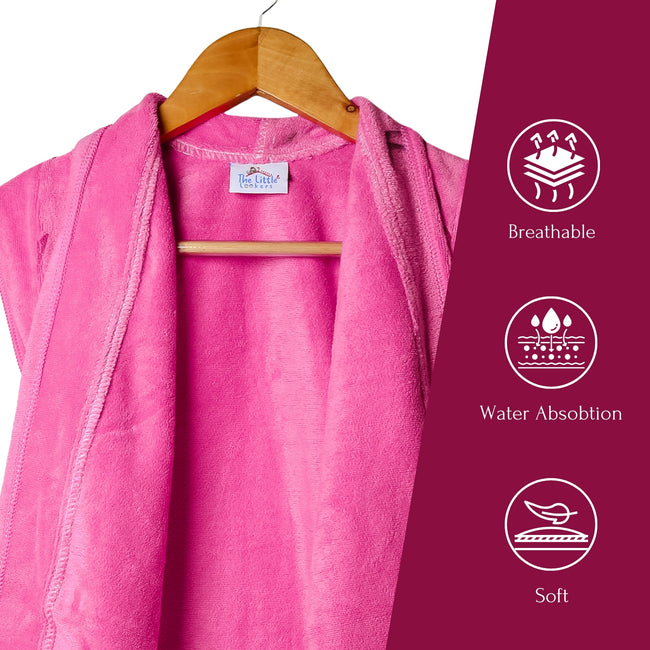 Cover up your kids in comfort with this Superior Bath Gown. This bath gown is made up of a 100% Soft Towel Cotton material for your baby skin to make it more soft and fluffy with a breathable fabric to give your baby at a maximum comfort a more absorbent. It absorbs water easily. It falls at knee-length height. With great color options which can be easily washed by Hands or Machine making it a great choice to wear right after the shower or bath.