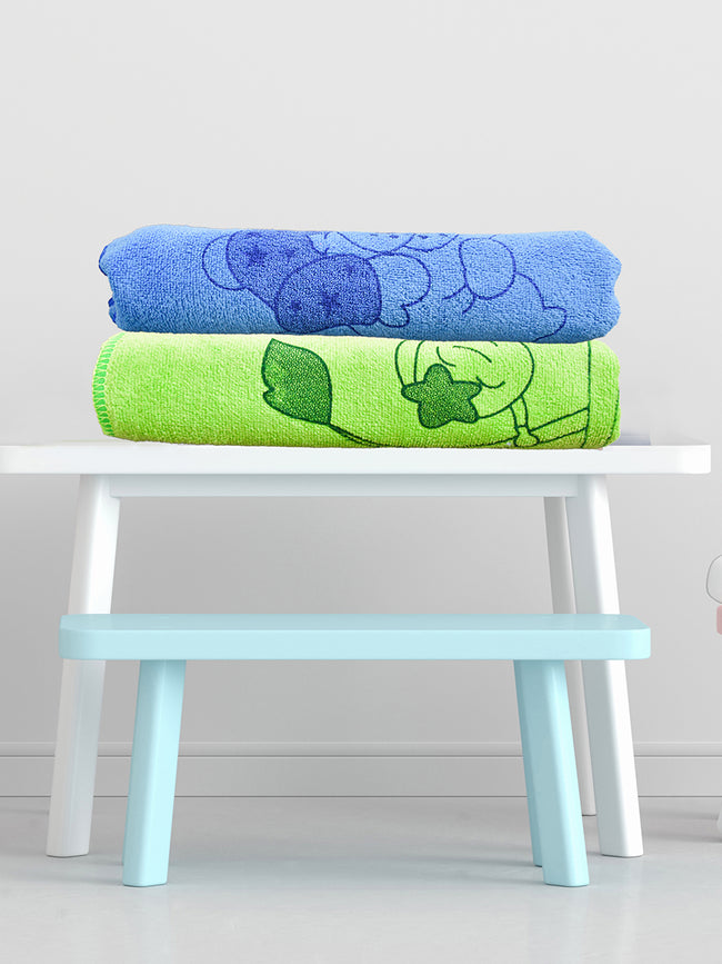 THE LITTLE LOOKERS® Towel for Newborn/ Baby/ Kids| Super Soft Baby Bath Towel Set for Infants/ Bathing Accessories| Blue & Green
