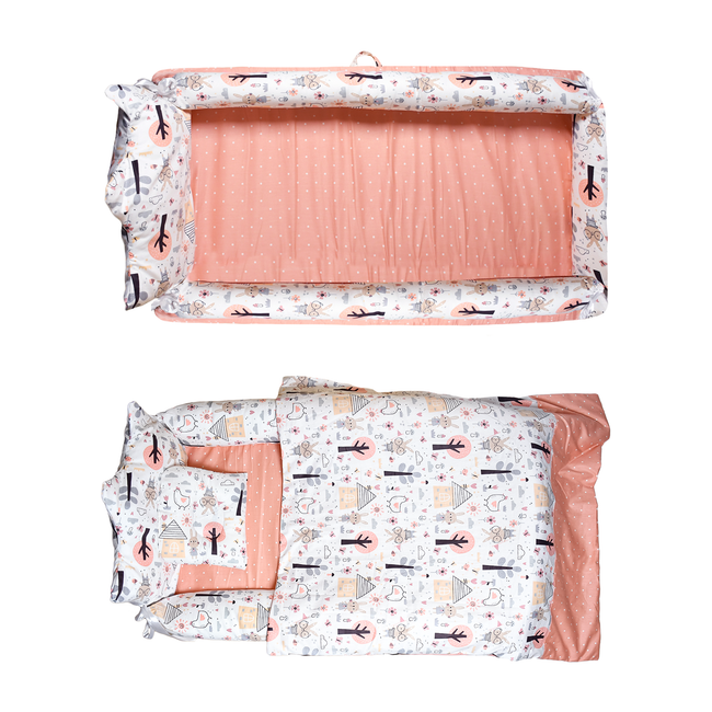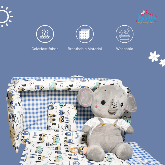 - Pillow : Complete the ensemble with our adorable pillow, designed with your baby's comfort in mind. Its gentle support cradles your little one's head during peaceful slumbers, while the soft, breathable fabric ensures a restful night's sleep.