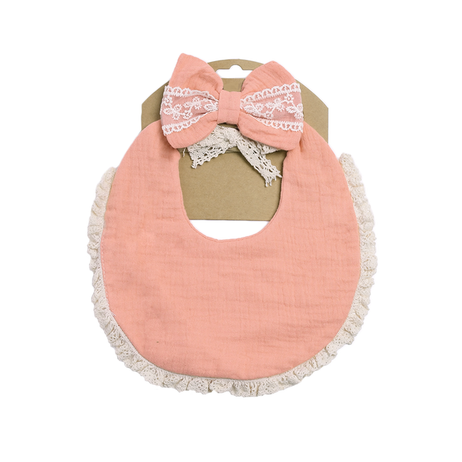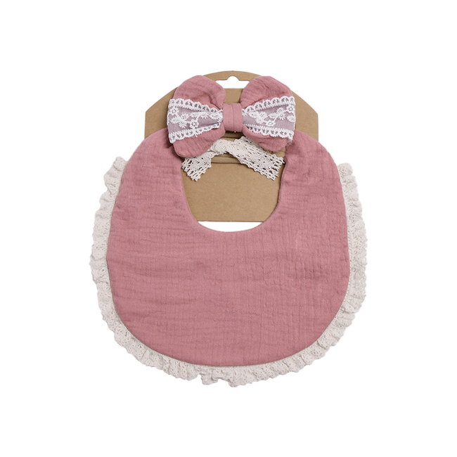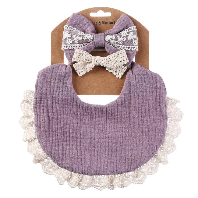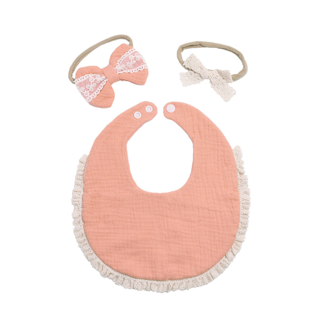 THE LITTLE LOOKERS Muslin Baby Bibs Drool Bibs Headband Set Drool Cloths Bibs 4-Layer Organic Cotton Lace Waterproof for Girls (Pack of 1)