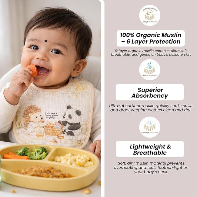 - ★【EXTRA ABSORBENT 6-LAYER DESIGN】: Crafted with premium muslin cotton layers for superior absorbency. Keeps your baby dry and comfortable during feeding, drooling, and teething.