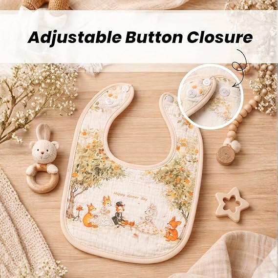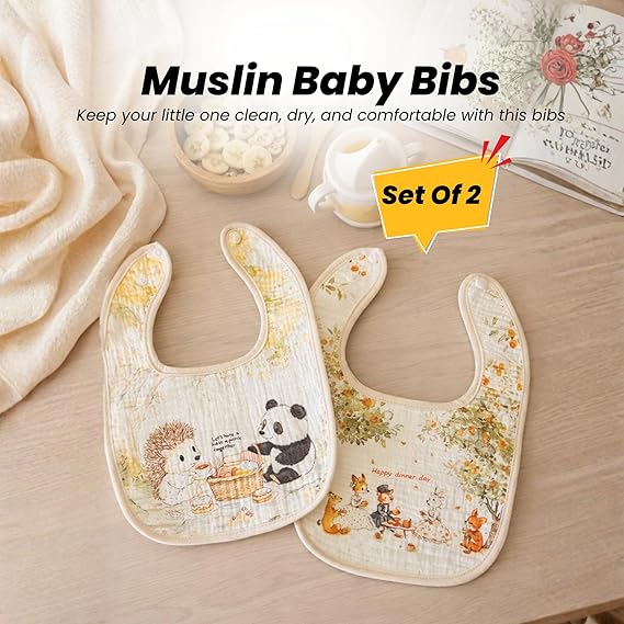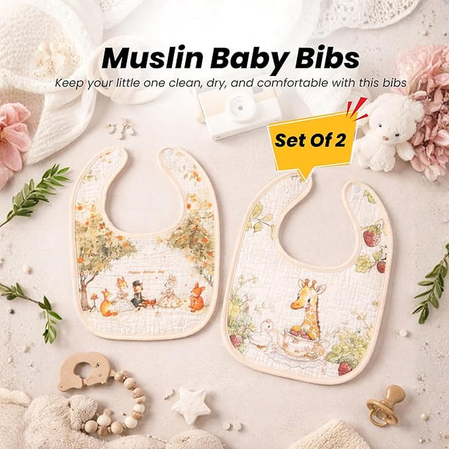 THE LITTLE LOOKERS Muslin Bib for Baby | Extra Absorbent 6-Layer Design | for Infants & Toddlers | Lightweight & Supersoft | Adjustable Button | Washable & Reusable | (Pack of 2)