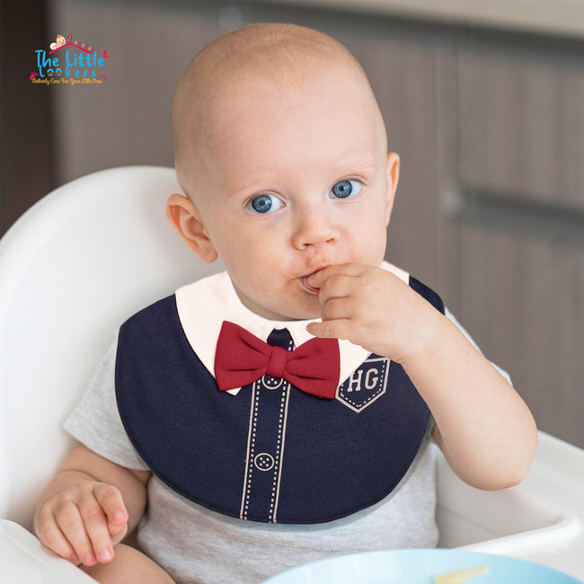 Our Bow-Tie Baby Bibs ? the perfect blend of style and functionality for your little gentleman. These bibs don't just keep your baby clean during mealtime; they make a fashion statement too. Crafted with love and care, our bibs are designed to keep your baby looking cute and well-dressed, even when they're making a mess. THE LITTLE LOOKERS Bow-Tie Baby Bibs are designed to combine fashion and function. They make a delightful accessory for special occasions or everyday use.