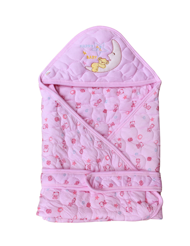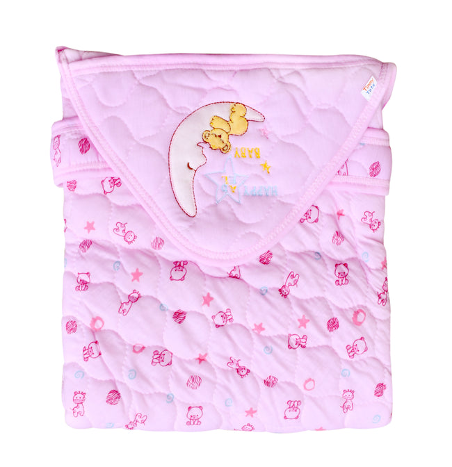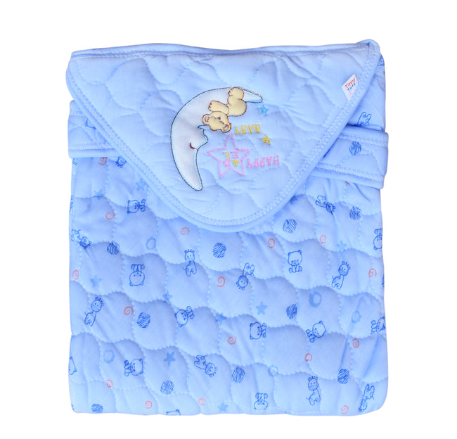 The Little Lookers Newborn Baby Quilted Wrapper Cum Blanket |Cotton Baby Wrap with Hood & Belt/Swaddle/Baby dohar/Baby odhna with Cute Prints