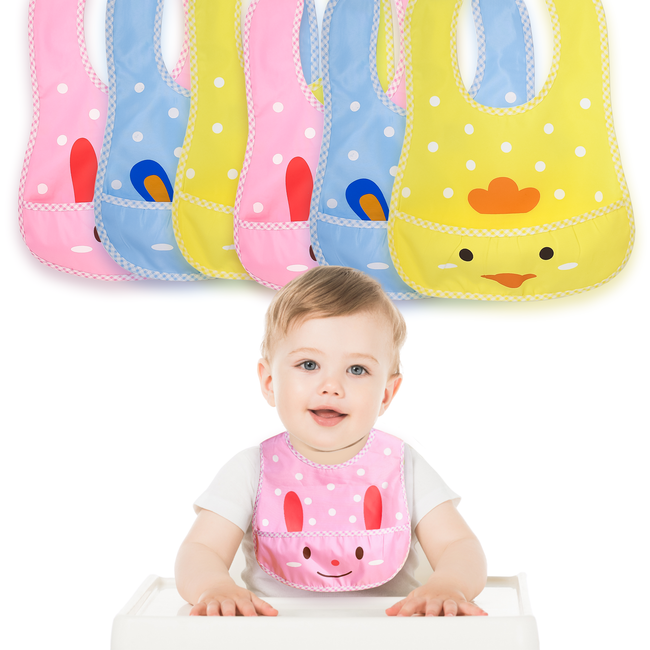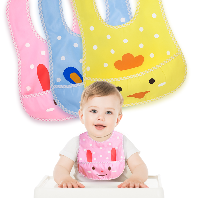 THE LITTLE LOOKERS Baby Button Bibs/Apron Cute Animated Print|with Tich Button & Front Pockets| Easy to Wipe Waterproof PVC Material for Newborns/Infants