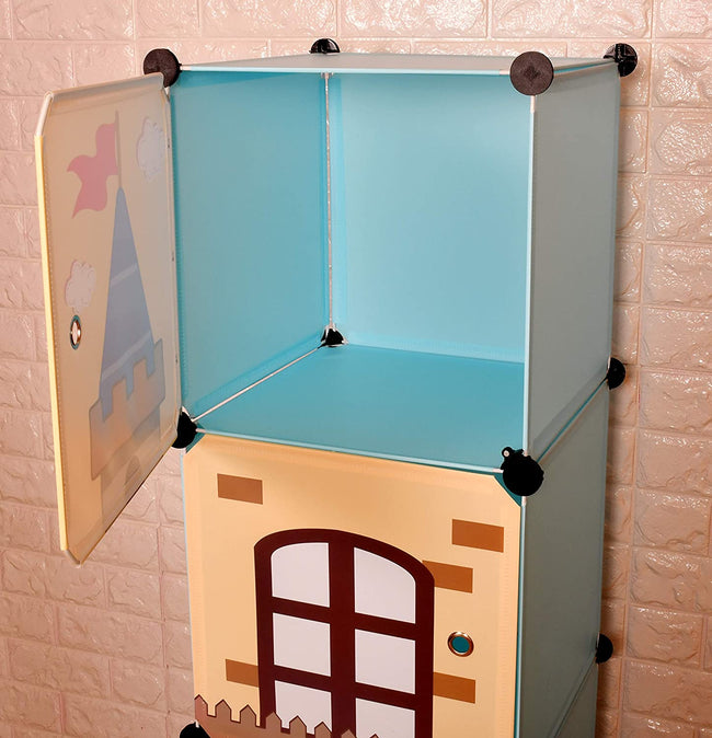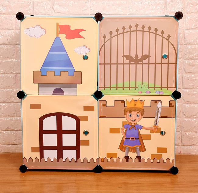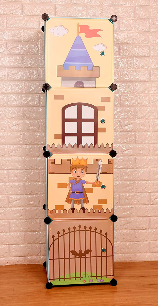 THE LITTLE LOOKERS Collapsible Kids Clothing Wardrobe |Cute Prince & Castle Print/Portable Waterproof Multipurpose Storage Rack/Adjustable Almirah for Babies/Girls/Boys