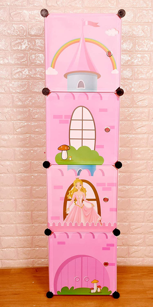 THE LITTLE LOOKERS Collapsible Kids Clothing Wardrobe | Cute Prince & Castle Print/Portable Waterproof Multipurpose Storage Rack/Adjustable Almirah for Babies/Girls/Boys