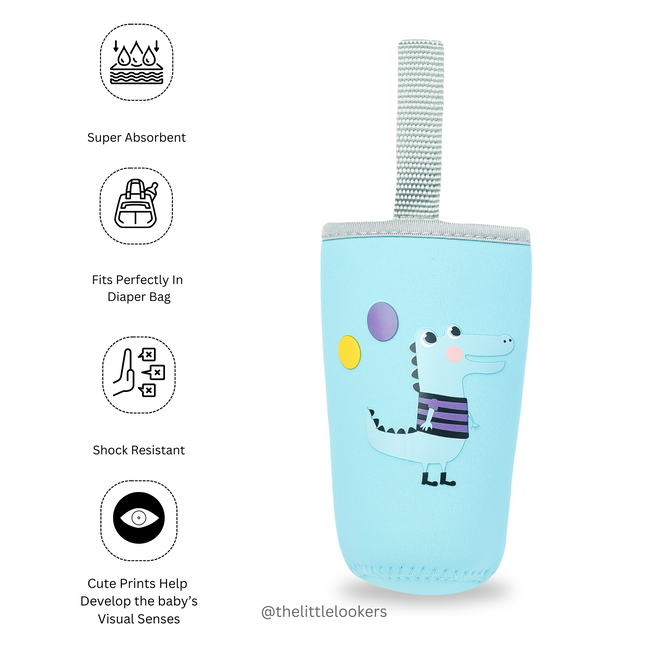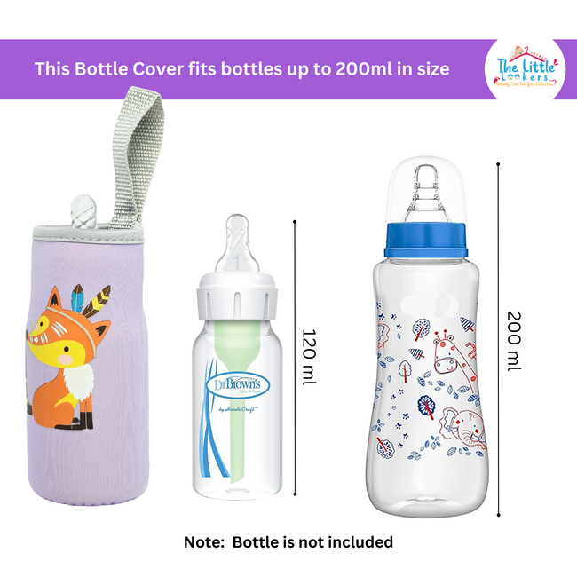 THE LITTLE LOOKERS Cute Animated Patterned Soft Stretchable Baby Feeding Bottle Cover with Easy to Hold Strap for 120ml, 150ml, 240ml