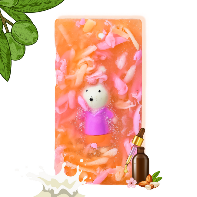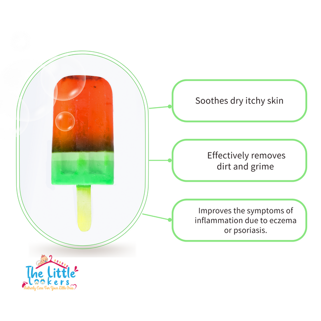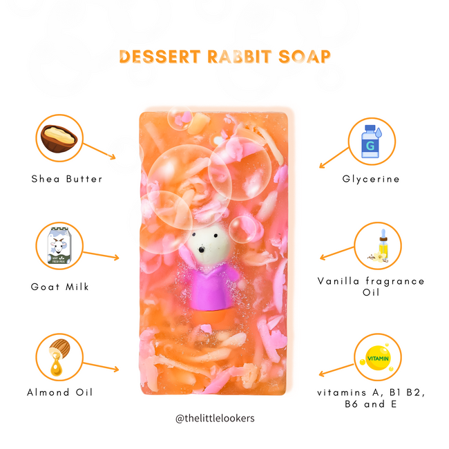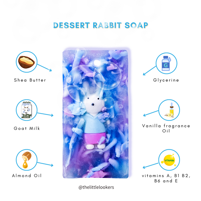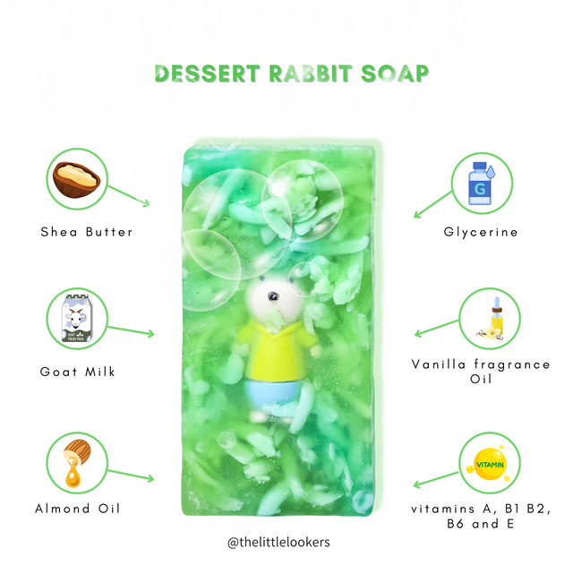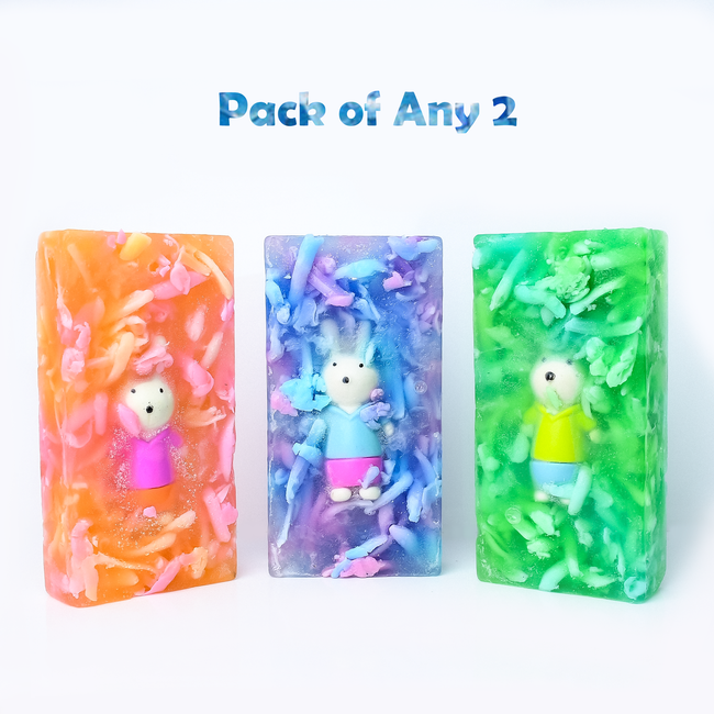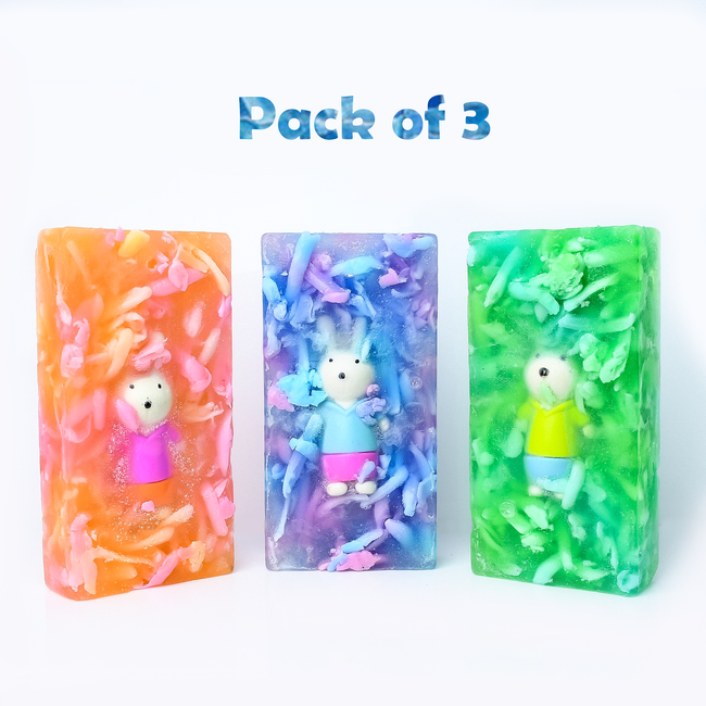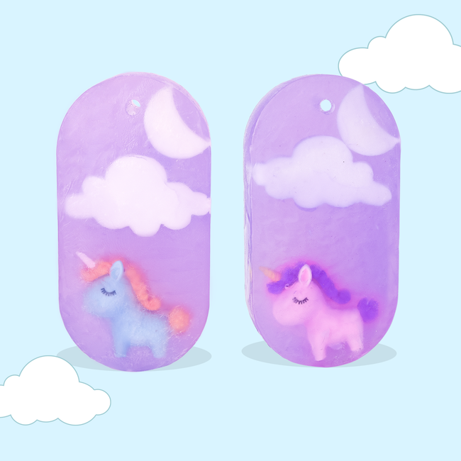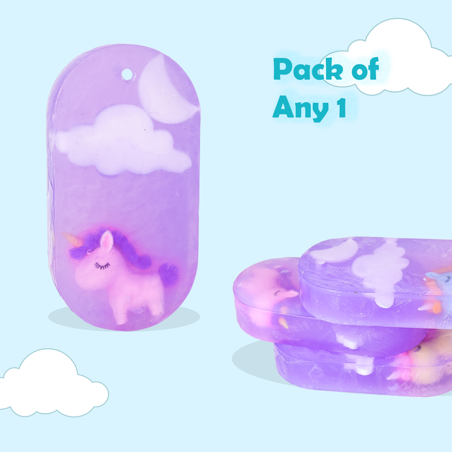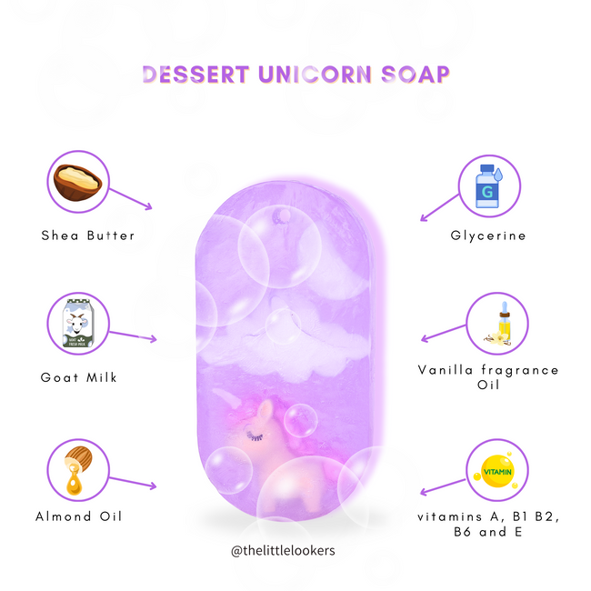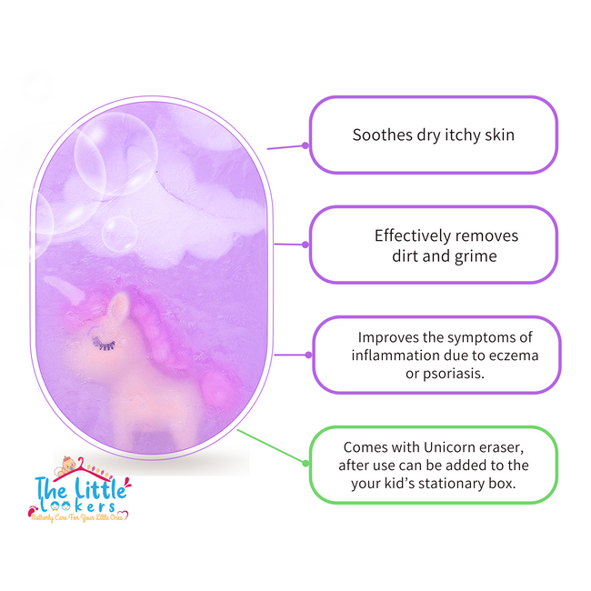 Ingredients: These bars are enriched with goodness of pure Goat milk, Shea butter, Almond oil, Glycerine and Mild Vanilla fragrance oil. Benefits: Goat's milk soap is generally considered safe for everyone. That includes the soft, extra-sensitive skin of babies and children, Suitable to use on delicate newborn skin. Soothes dry itchy skin and helps with improving the symptoms of inflammation due to eczema or psoriasis. Effectively removes dirt and grime from the most sensitive skin, while leaving skin beautifully soft and moisturised. Shea butter reduces skin inflammation. Almond oil has a light, sweet scent and contains vitamins A, B1 B2, B6 and E, as ell as monounsaturated and polyunsaturated fats. Almond oil is an excellent choice for use on babies because it is naturally rich in emollients and pure enough for sensitive baby skin. Comes with Unicorn eraser, after use can be added to the your kid’s stationary box.