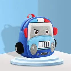 THE LITTLE LOOKERS Preschool Kids School Bags Cute Soft Plush Baby Backpack for Baby Boys, Baby Girls- Blue (Police Car)