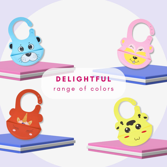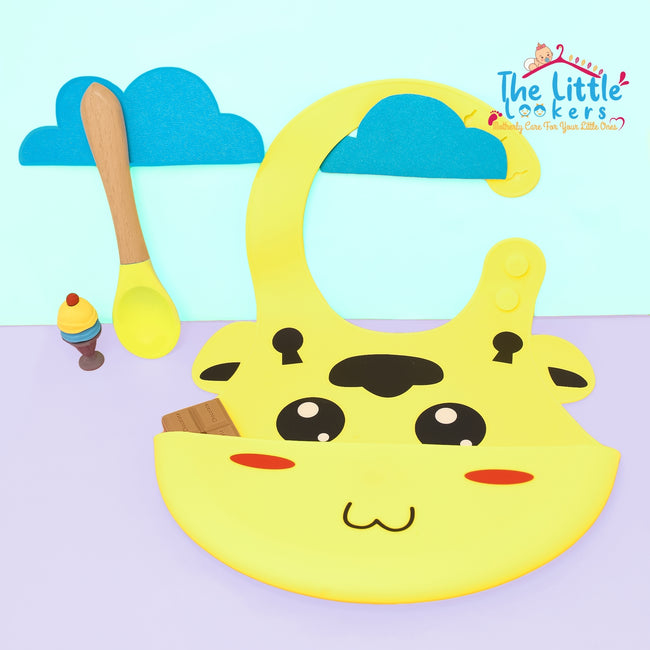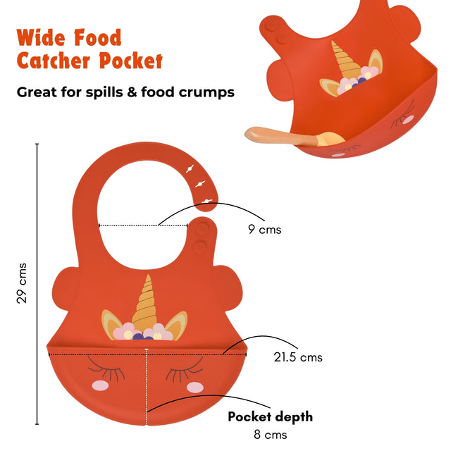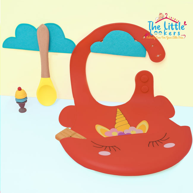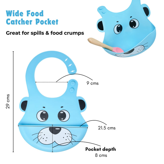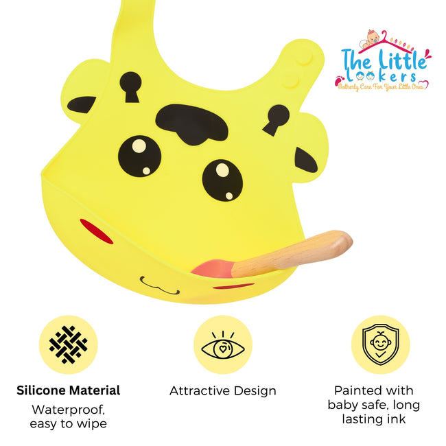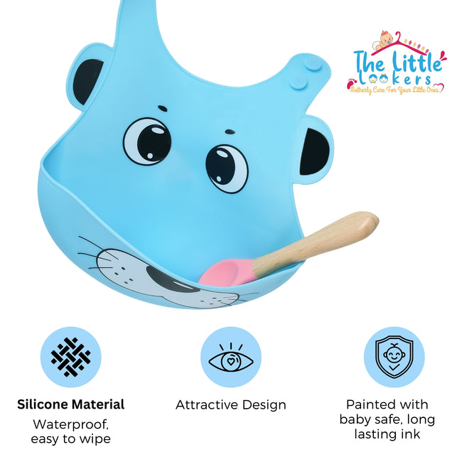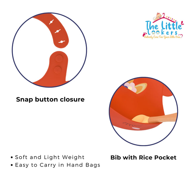 THE LITTLE LOOKERS Silicone Feeding Bib with Adjustable Strap, Waterproof, Easy to wash, Stain Proof | BPA Free/Soft Material Bibs with Tray/Food Catcher