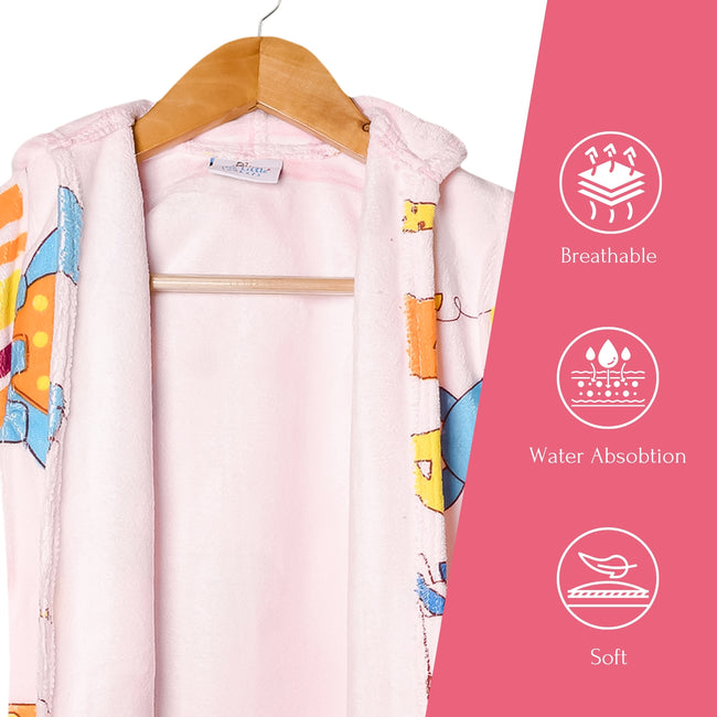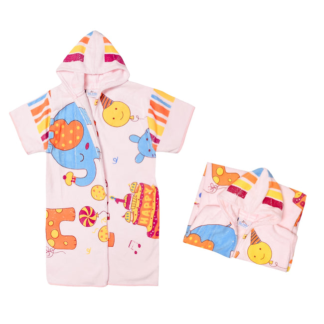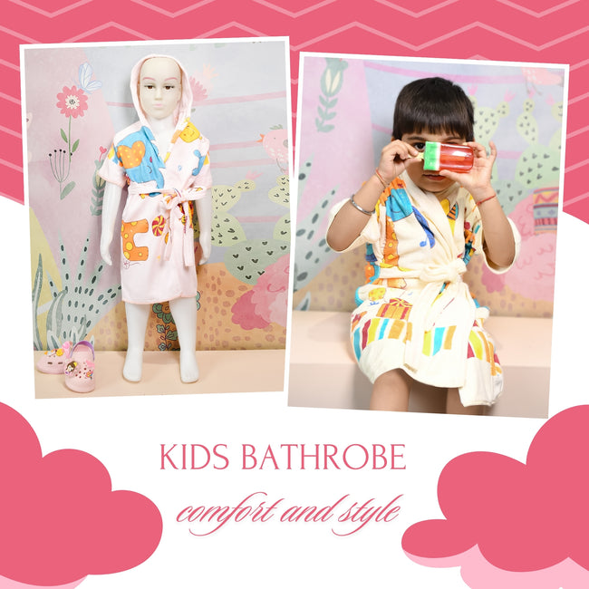 Cover up your kids in comfort with this Superior Bath Gown. This bath gown is made up of a 100% Soft Towel Cotton material for your baby skin to make it more soft and fluffy with a breathable fabric to give your baby at a maximum comfort a more absorbent. It absorbs water easily. It falls at knee-length height. With great color options which can be easily washed by Hands or Machine making it a great choice to wear right after the shower or bath.