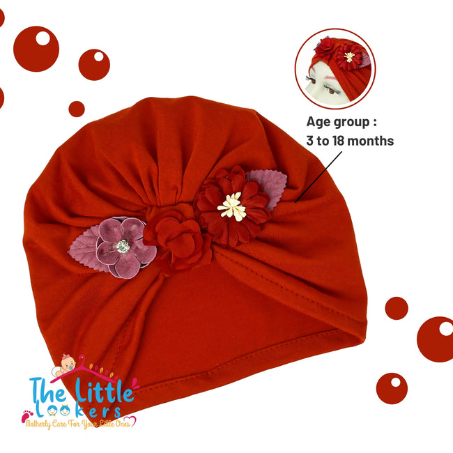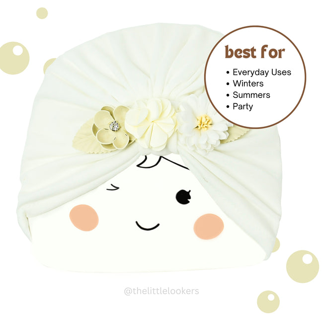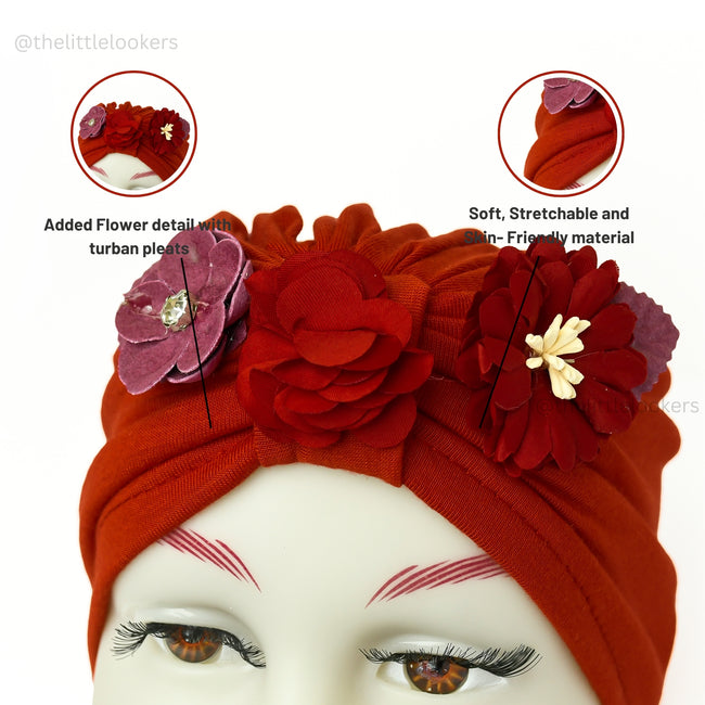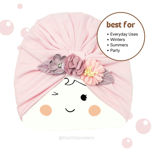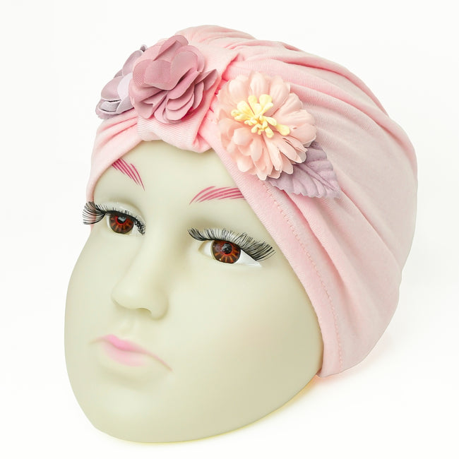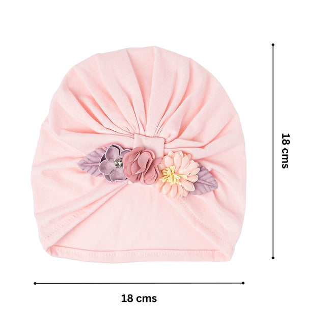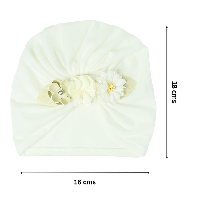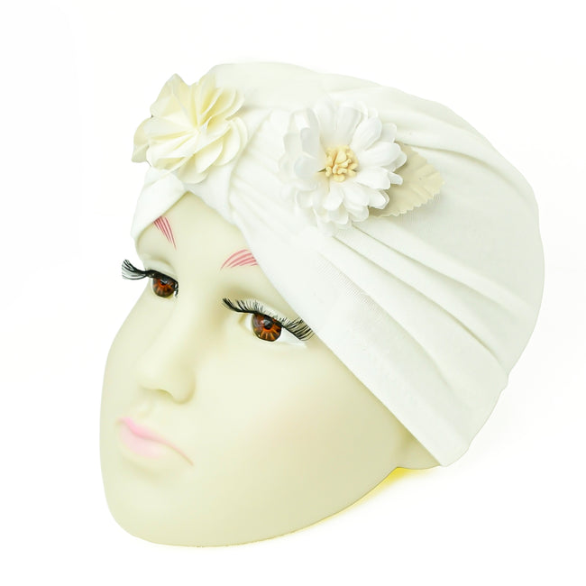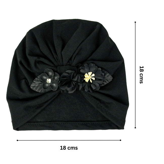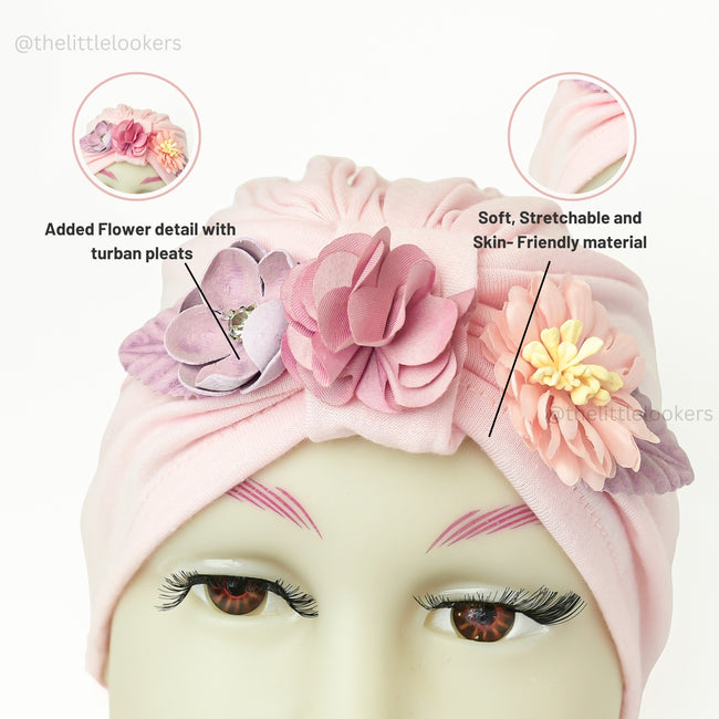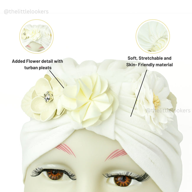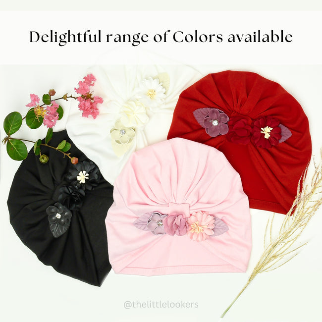 - BEAUTIFUL PLEATED FLOWER DESIGN: Adorned with a delicately pleated flower at the front, this turban cap makes your baby stand out with an irresistible, chic look.
