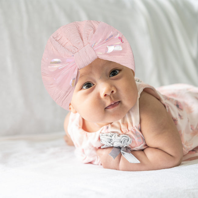 - Design: These cute bow style turbans look fashionable and comfortable at the same time. It gives a cozy feel to the baby and give a trendy look too.