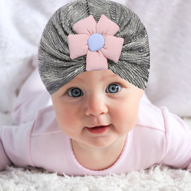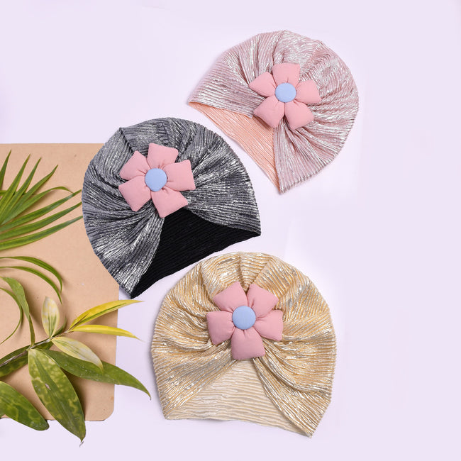 - THE LITTLE LOOKERS Unisex Soft Turban Cap with Flower Bow, Beanie Cap for Newborn Baby/Infants, Baby Head-Wear | Suitable for 3 to 18 Months Baby