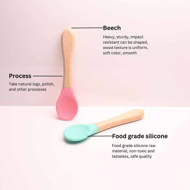 THE LITTLE LOOKERS Silicone Spoon is the perfect addition to your baby feeding routine. Made of soft-silicone and wooden. these baby feeding spoons are much gentler on your child’s gums than other hard plastic or metal utensils. They are fantastic for teething babies and will help them learn the skill of feeding themselves. The first feeding utensils for a baby is not only a wonderful gift that will make life easier for a mother, but first of all, it will make the process of eating for a baby more fun.