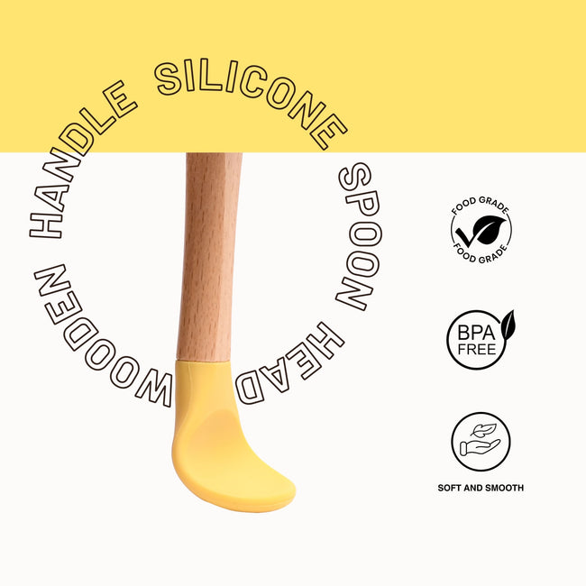 - THE LITTLE LOOKERS Silicone Spoon with Bamboo Handle, BPA Free Feeding Spoons for Baby/Kids/Toddlers