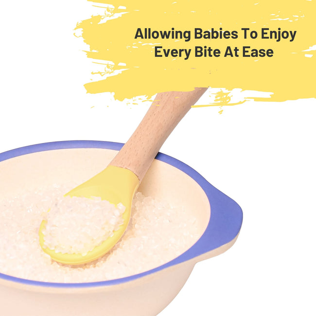 THE LITTLE LOOKERS Silicone Spoon with Bamboo Handle, BPA Free Feeding Spoons for Baby/Kids/Toddlers