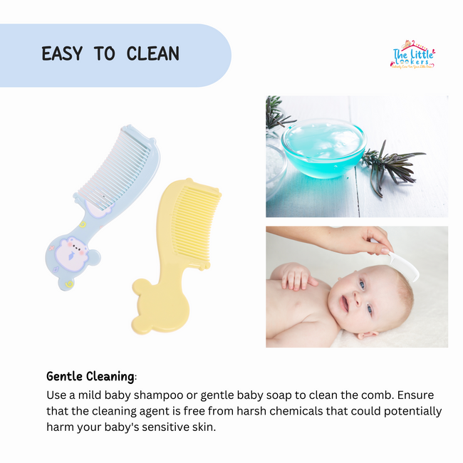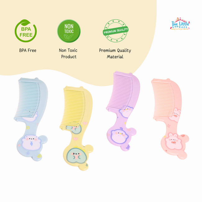 THE LITTLE LOOKERS baby hair comb set , A Newborn Essential Brushing your baby's hair with our wide-toothed comb can unravel even the toughest tangles, increase the blood flow to the scalp and also stimulate growth. It also helps to make your little munchkin look well-groomed and extra cute with those settled and combed hair. Brushing your baby's hair gently with our soft and comfortable hair comb can give him a very therapeutic feeling and make him feel calm. Combing can also be extremely useful if your baby has trouble settling down for a sleep. It's a gentle combing set for effortless & enjoyable grooming of your little one.