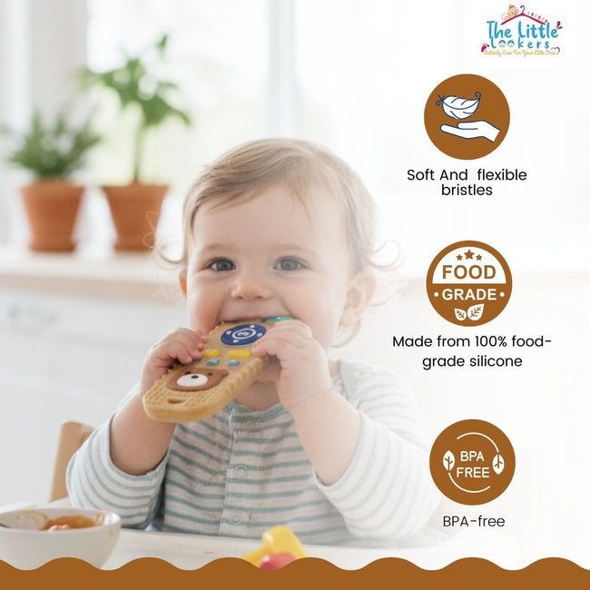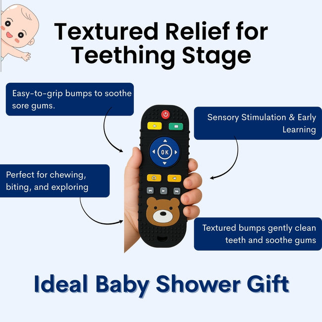 THE LITTLE LOOKERS Baby Silicone Remote Control Teether – BPA-Free Infant Teething Toy with Textured Buttons & Bear Design – Safe, Soft & Easy to Hold for Teething Relief