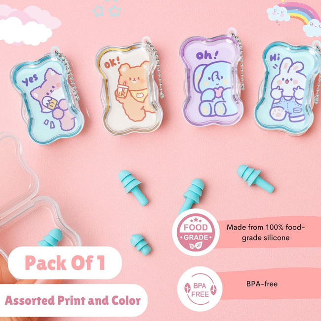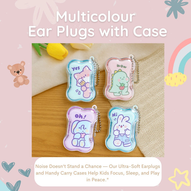 THE LITTLE LOOKERS Earplugs with Case For Kids | Earplugs Earbuds for Swimming, Study, Sleep, Meditation - Assorted Print & Color