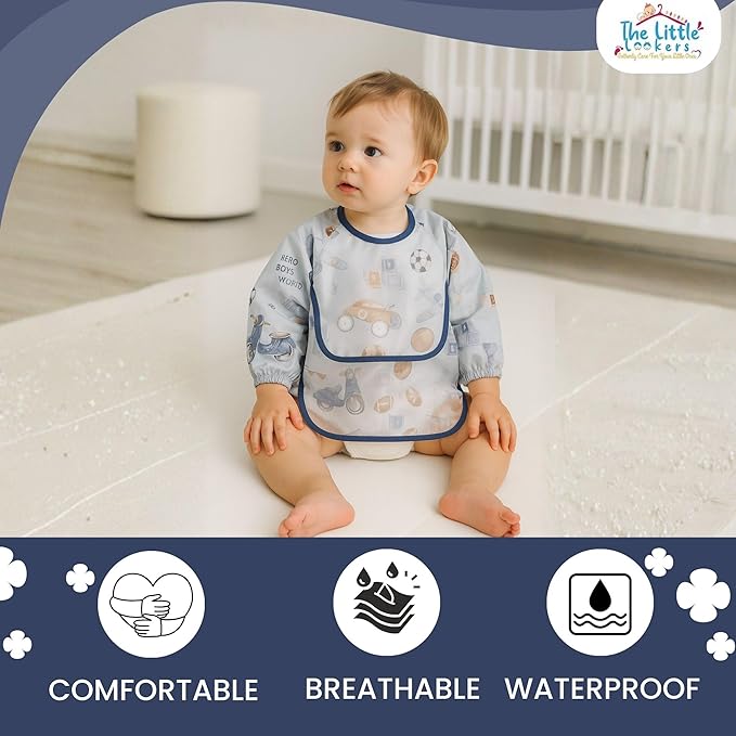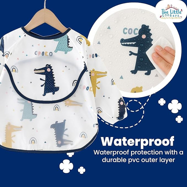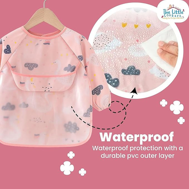 THE LITTLE LOOKERS Baby Bibs with Pocket Long Sleeved Bib for Toddlers, Kids I Washable, Lightweight & Waterproof, Bibs for 6 - 24 Months Baby (Pack of 2)