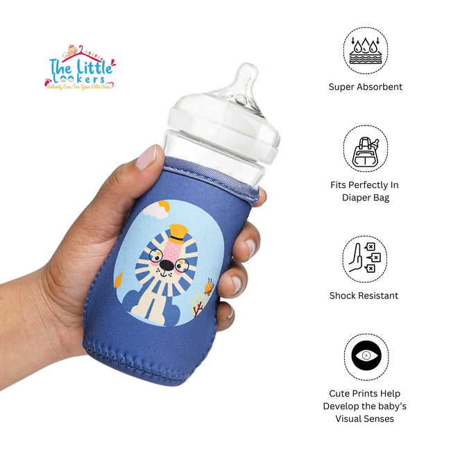 THE LITTLE LOOKERS provides a wide range of cute and adorable bottle covers that will turn the bottle feeding into fun for your little one. These cutely designed Bottle covers will take away your worries and will make the bottle feeding a joyful and playtime activity for your kid. Baby will love the colors and Animated Prints on it. Made from sturdy material, these bottle covers are made from soft fabric that protects the feeding bottles from dust & scratches and keep the bottles covered during the time of travel and at home. The elastic neck provides the perfect grip. These bottle covers are easy to clean which makes it ideal for everyday use. These bottle covers come in multiple colors which will bring a beautiful and priceless smile on your kid's face.