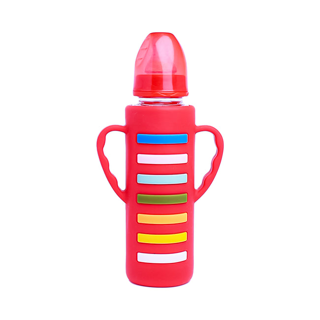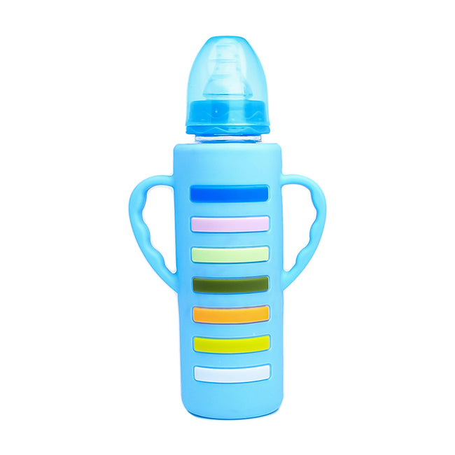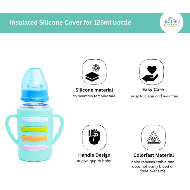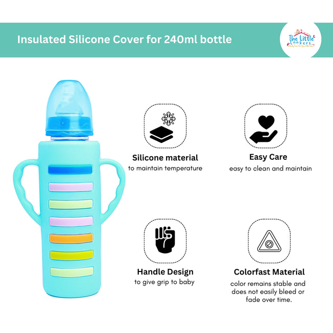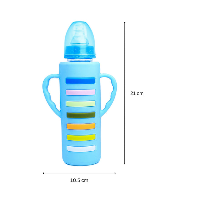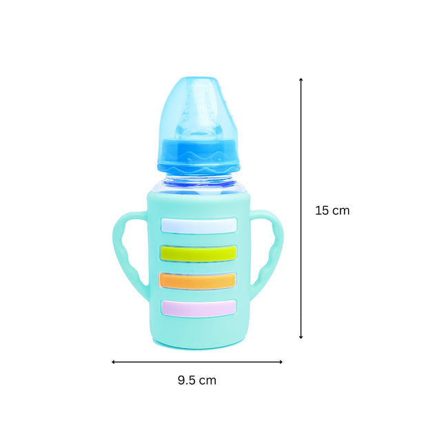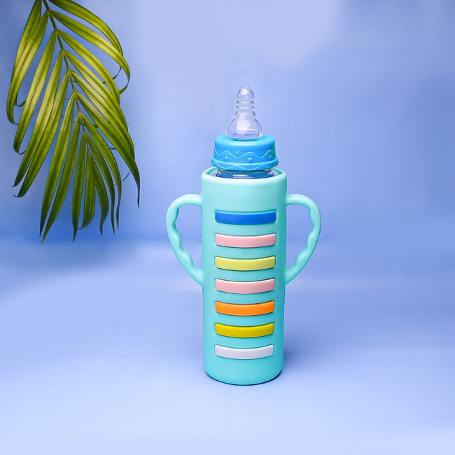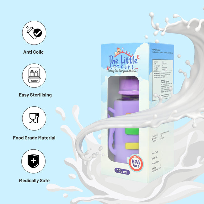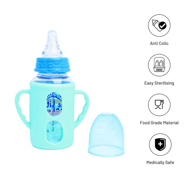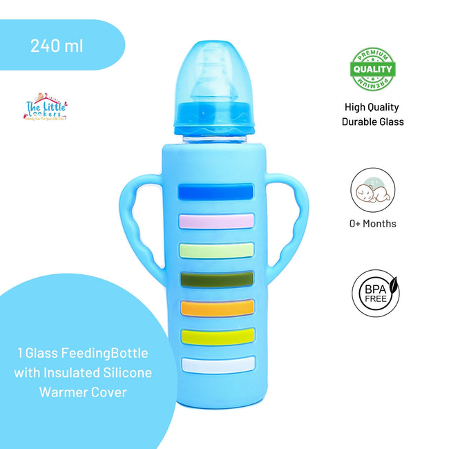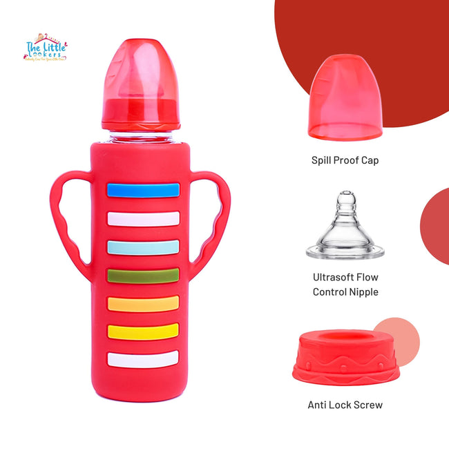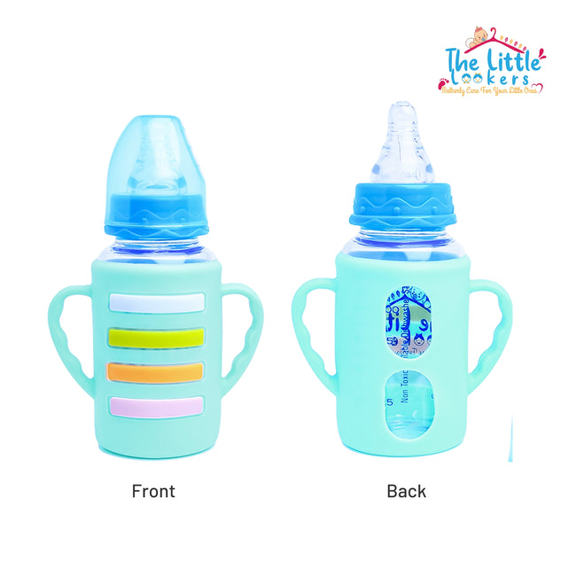 The Little Lookers High Borosilicate Glass Feeding Bottle with Handle Silicon Cover for Baby/Feeder for Newborn | Super Soft Flow Control & Anti Colic Nipple for Infants/Toddlers