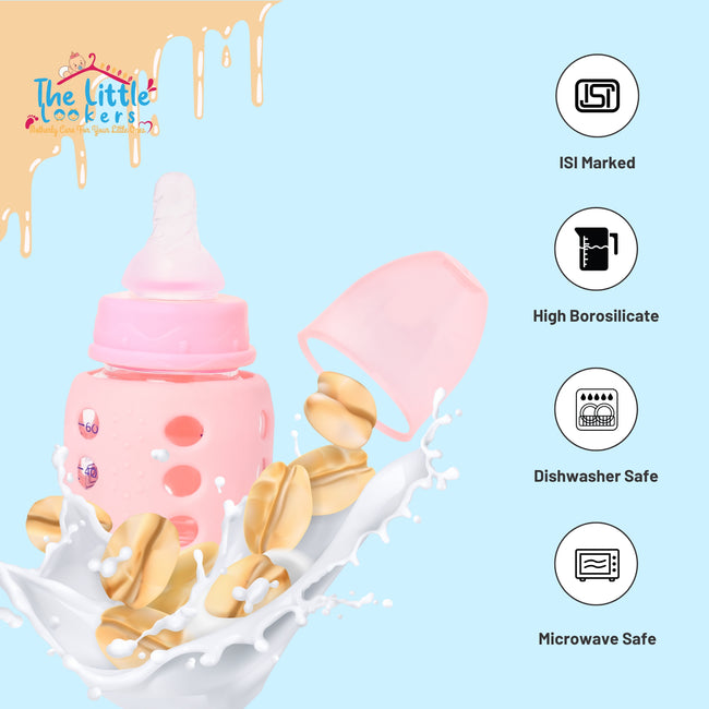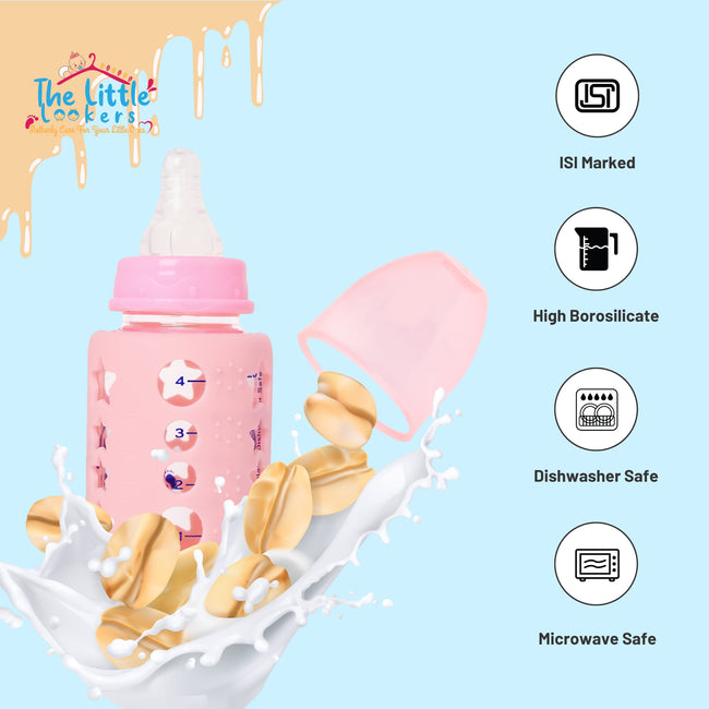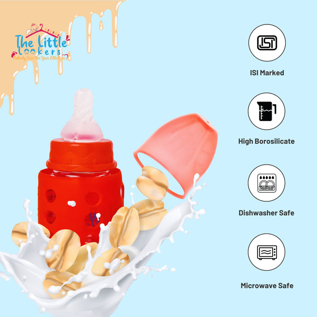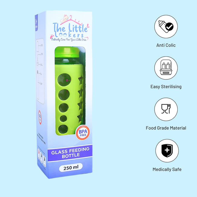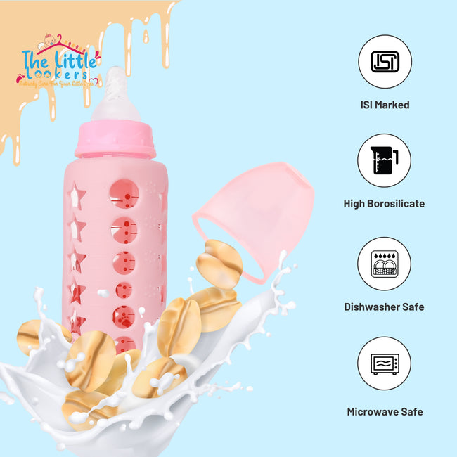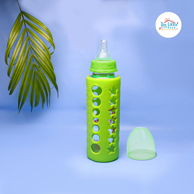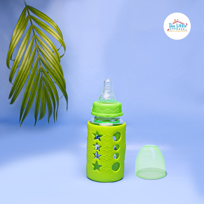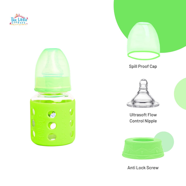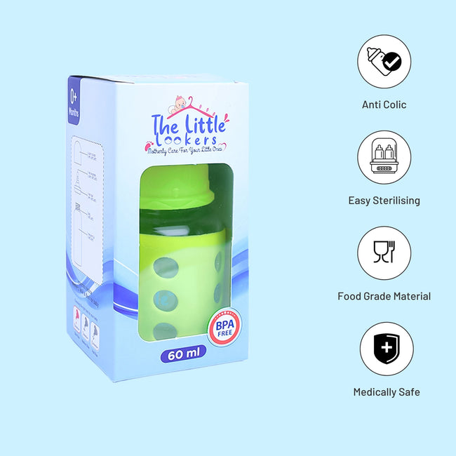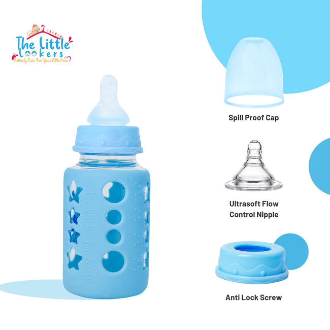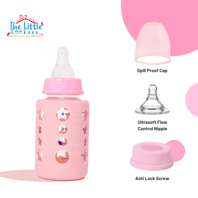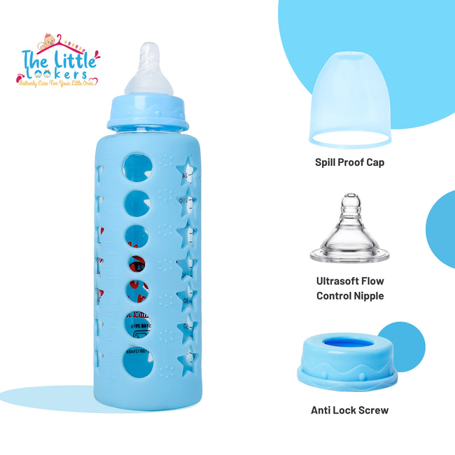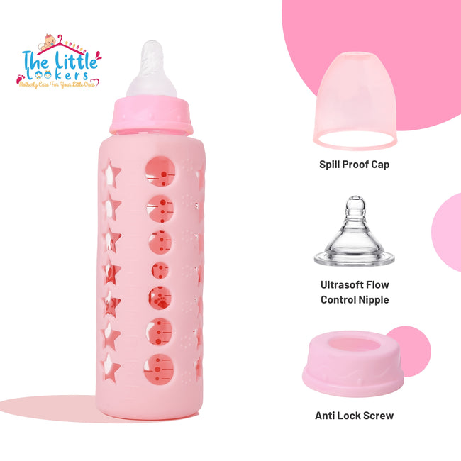 The Little Lookers High Borosilicate Glass Feeding Bottle for Baby/Feeder for Newborn | Super Soft Flow Control & Anti Colic Nipple for Infants/Toddlers