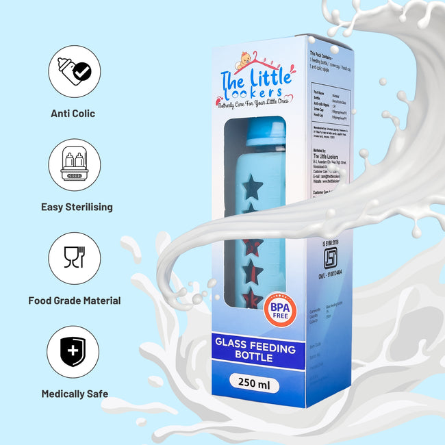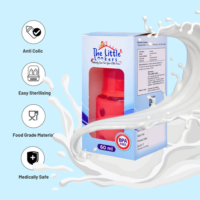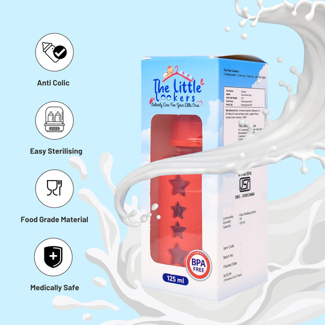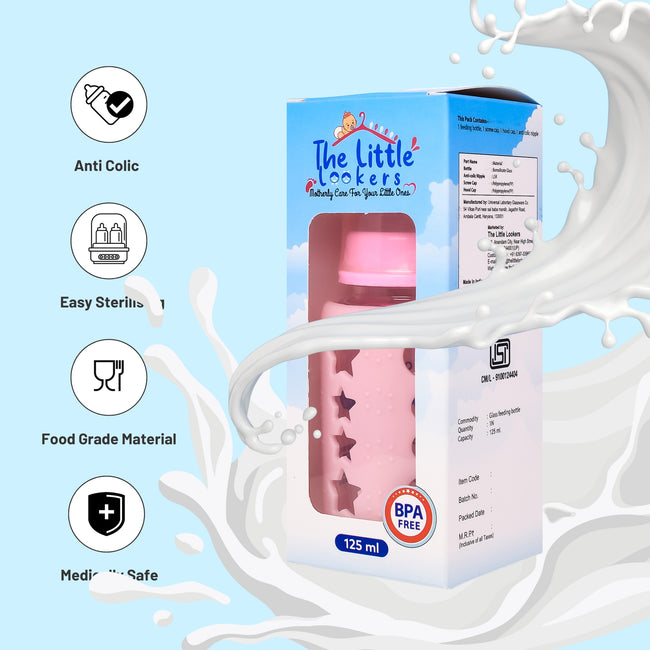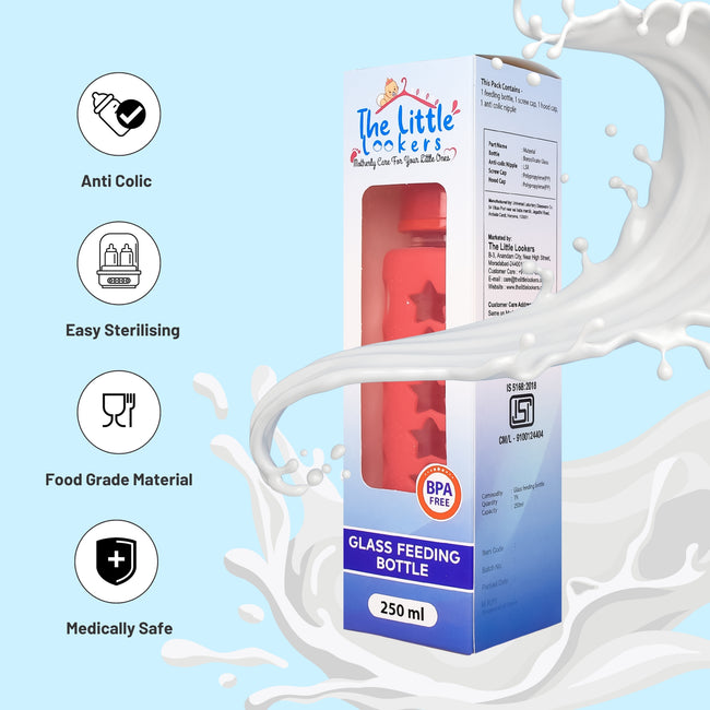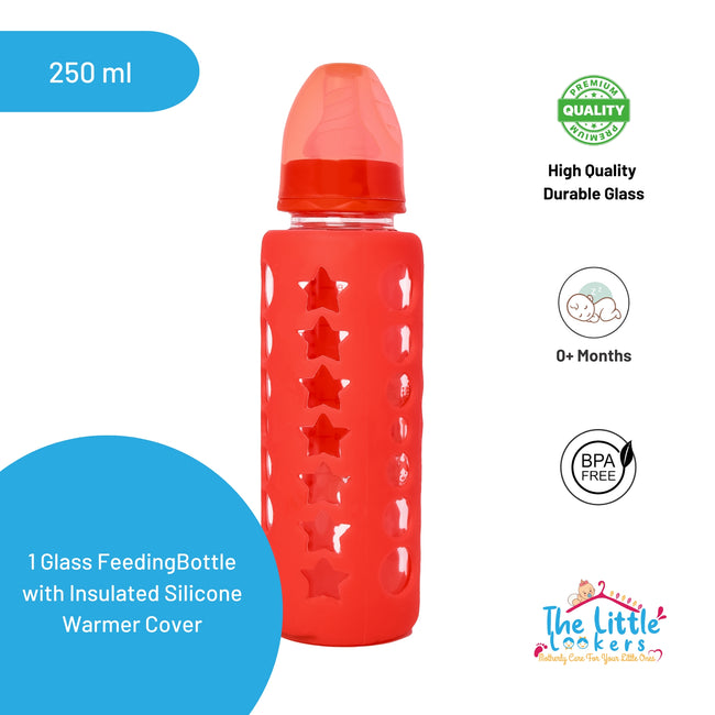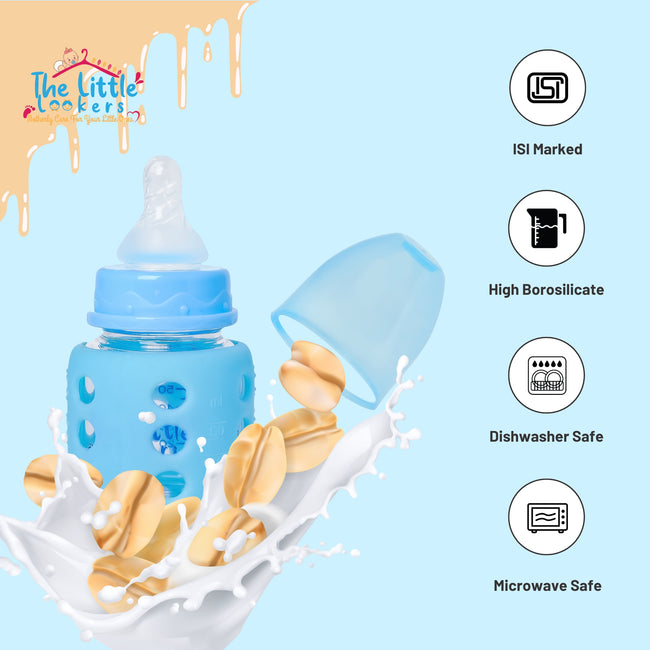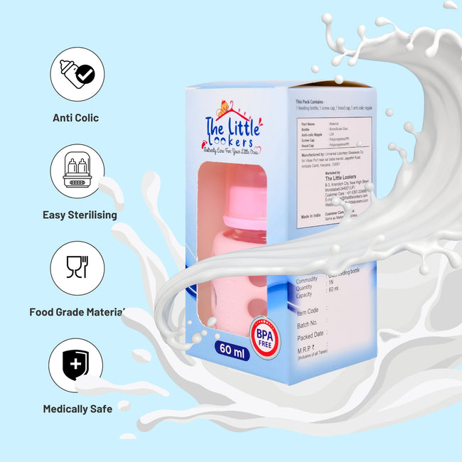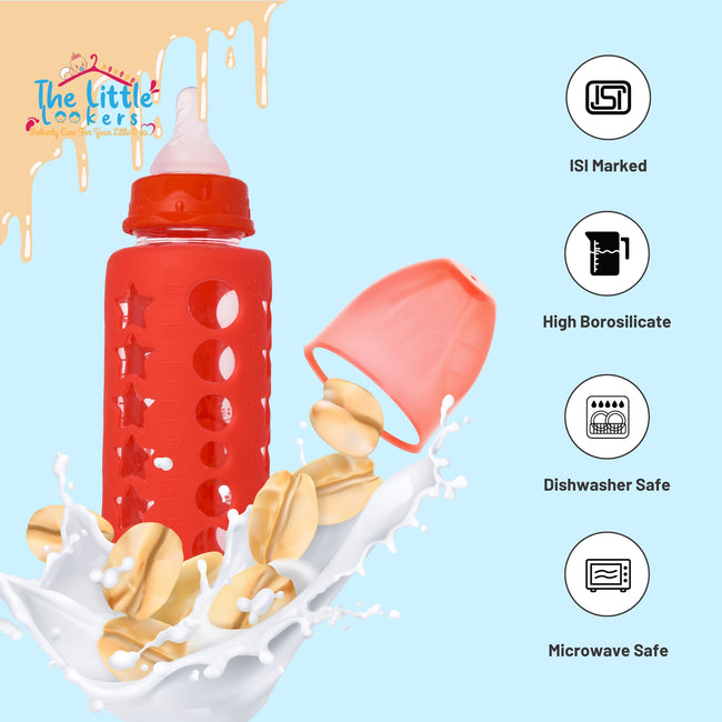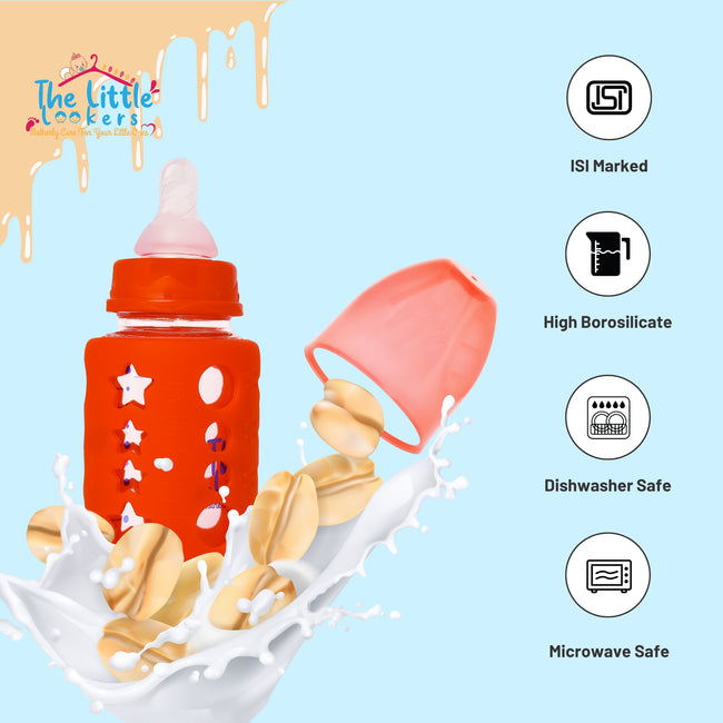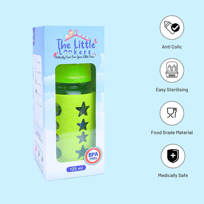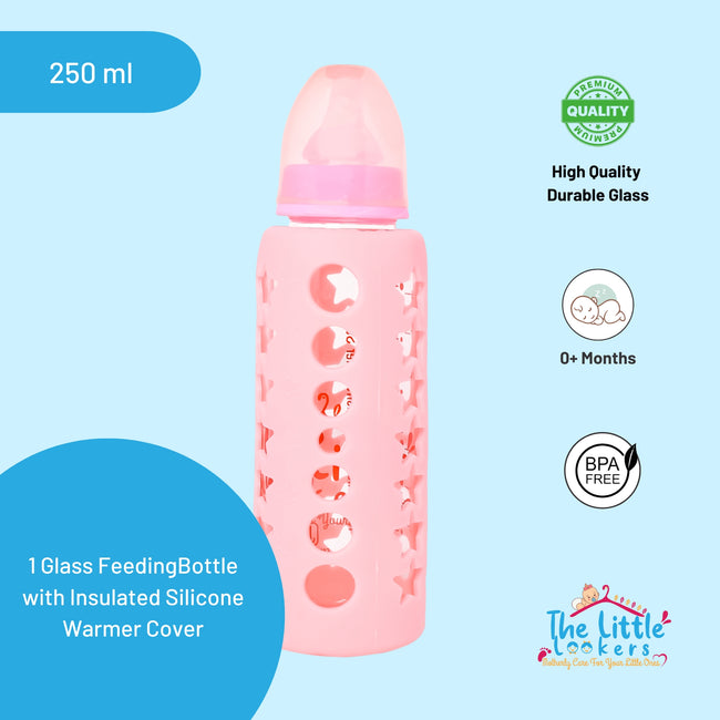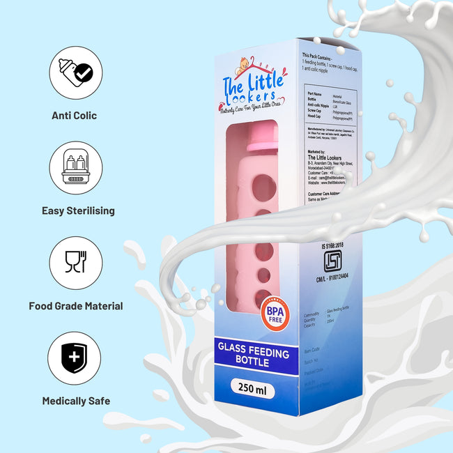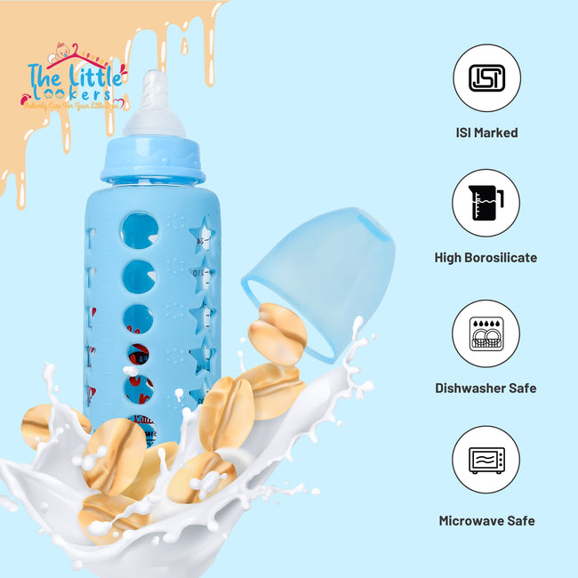 The Little Lookers High Borosilicate Glass Feeding Bottle for Baby/Feeder for Newborn | Super Soft Flow Control & Anti Colic Nipple for Infants/Toddlers
