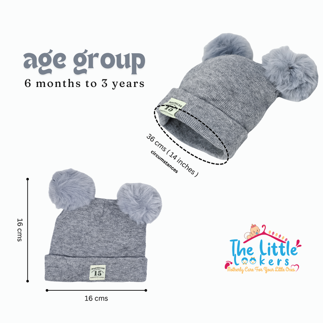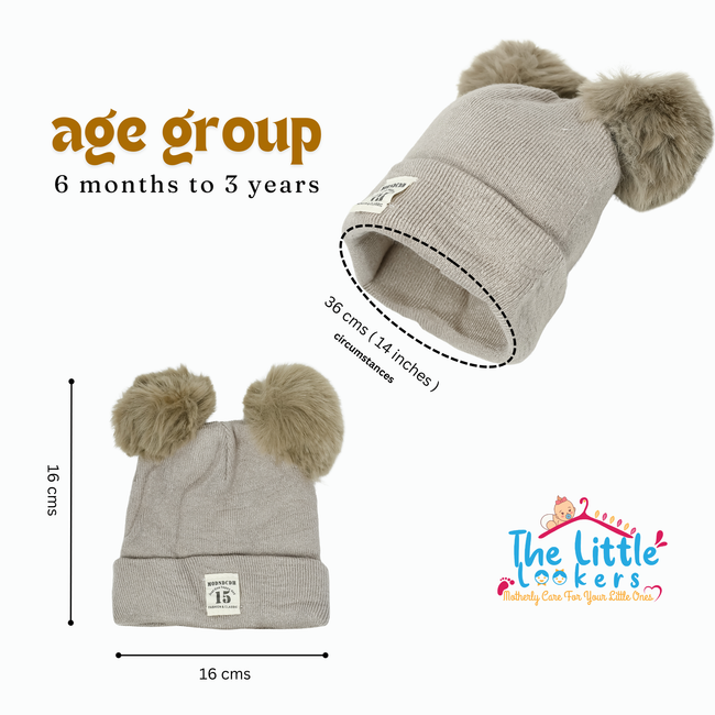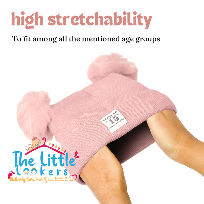 THE LITTLE LOOKERS Baby Knit Cap I Winter Pom Pom Beanie Cap for Kids/Toddler /Girls/ Boys (6 Months - 3 Years Baby)