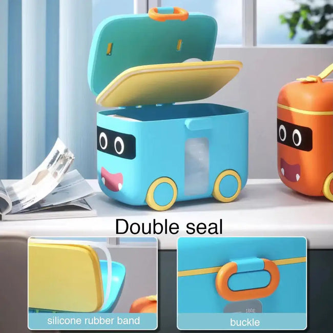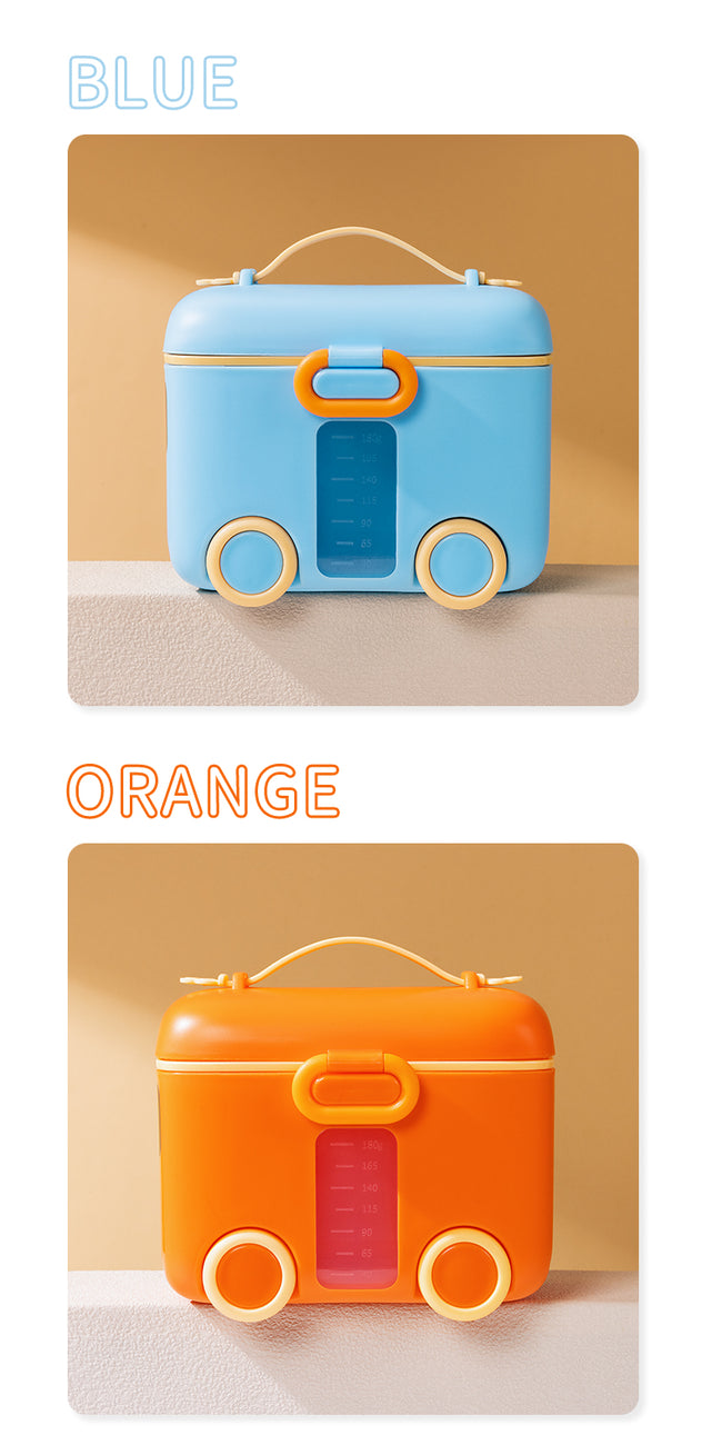 THE LITTLE LOOKERS baby milk powder storage box is an essential item for parents on the go. this container is made of durable, high-quality silicone and plastic materials, ensuring that your baby's food stays fresh and safe.