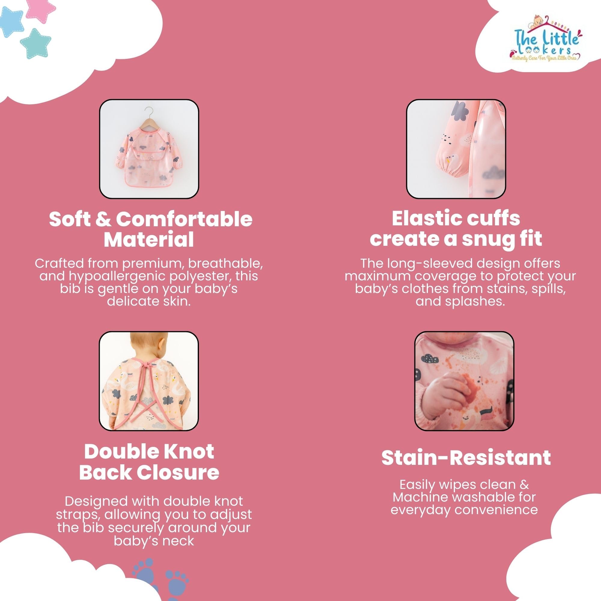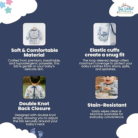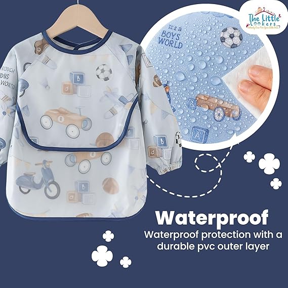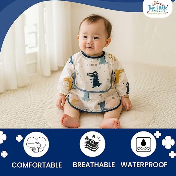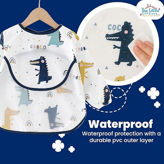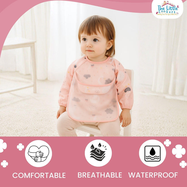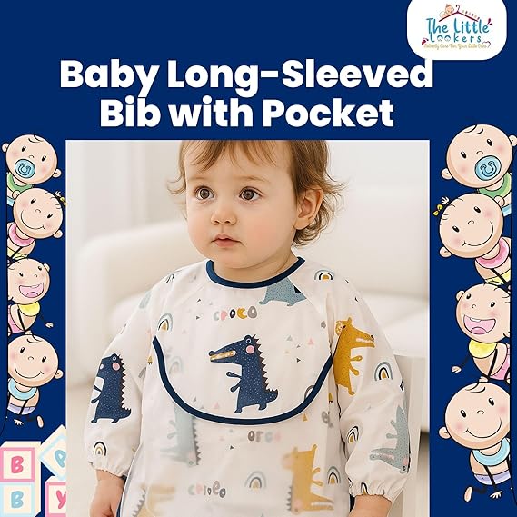 THE LITTLE LOOKERS Baby Bibs with Pocket Long Sleeved Bib for Toddlers, Kids I Washable, Lightweight & Waterproof, Bibs for 6 - 24 Months Baby