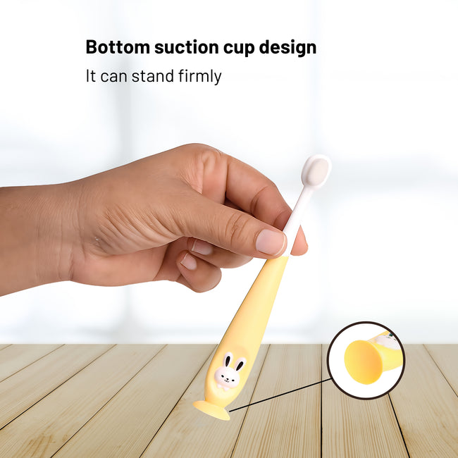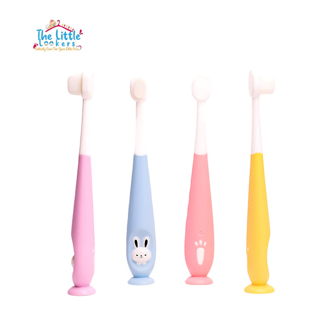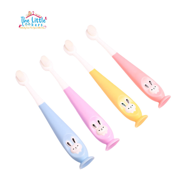 THE LITTLE LOOKERS baby toothbrush specially designed for the delicate mouths of toddlers to ensure the babies safety with high quality hygienic products. We understand that young gums and emerging teeth require gentle yet effective cleaning. Our toddler-friendly toothbrush is very convenient for the baby; its soft bristles, compact head size and an ergonomic handle ensuring a comfortable brushing experience for your little one. The toothbrush has an attractive bunny design that makes brushing fun for your younger ones.