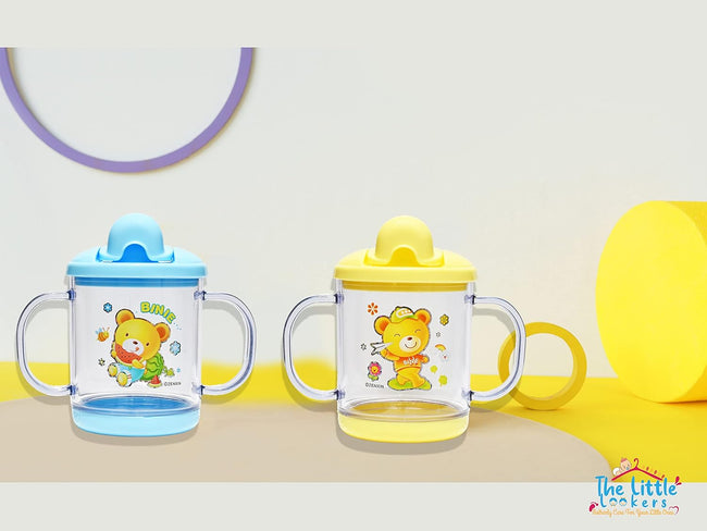 THE LITTLE LOOKERS Premium Quality Bpa Free Unbreakable Sippy Cup (Sipper Mugs for Kids/Children/Babies/Infants) Spout Infant PP/Glass Look Water/Juice Training Sipper Cup with Handles-200ml (Pack of 2)