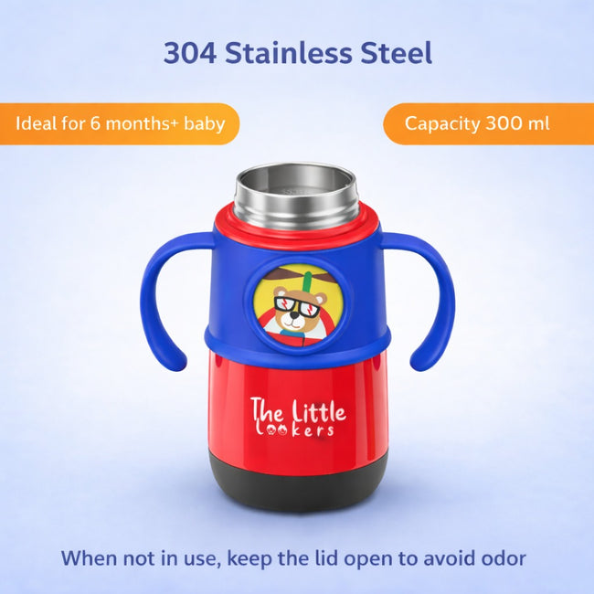 THE LITTLE LOOKERS Sipper for Kids 300ml | Stainless Steel Hot & Cold Sipper Bottle for Baby | Rust-Proof | Travelling Water Bottle | Ideal Sipper Water Bottle for School Kids | Sipper with Handle
