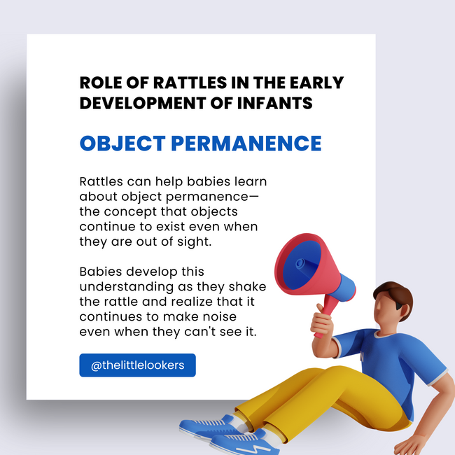- Three months or more babies begin to learn to grasp things. Colorful and attractive rattles and teethers can stimulate baby's visual, hearing, touch, help babies in their teething period, and coordination.