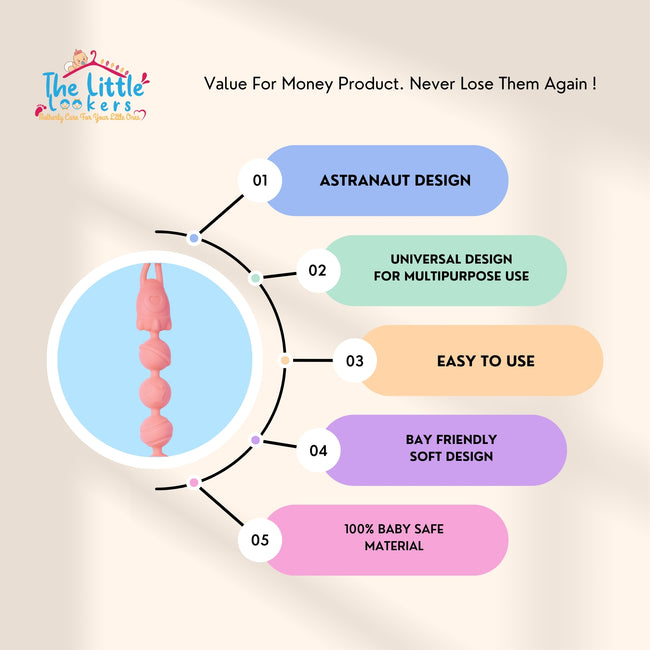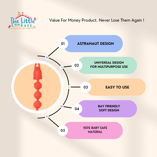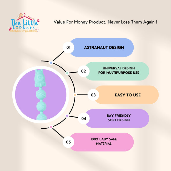 - ONE - PIECE DESIGN CLIPS - Our baby pacifier clip are designed in one piece, not strung with beads, no dangerous small parts that can cause choking, silicone dummy clip are absolutely safe.