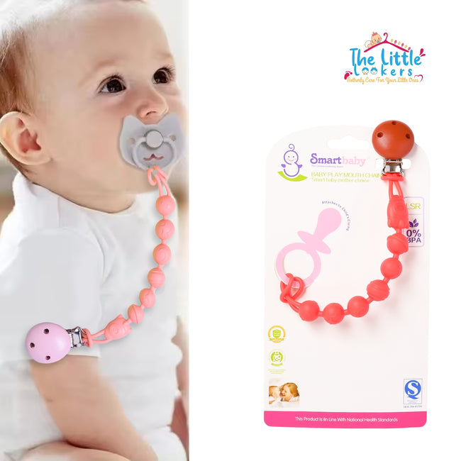 - SAFETY and QUALITY - Our pacifier clips are made from food-grade silicone, free of any harmful chemicals, ensuring they're safe for your baby to chew on. The clips themselves are crafted from high-quality natural wood, with silicone inserts to protect your baby’s clothing from damage. These pacifier clips double as teething toys, offering a safe and durable option for your little one.