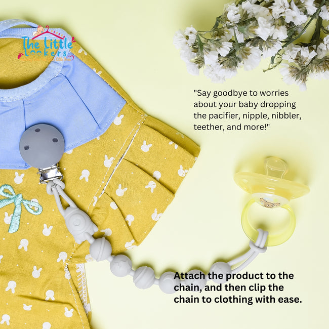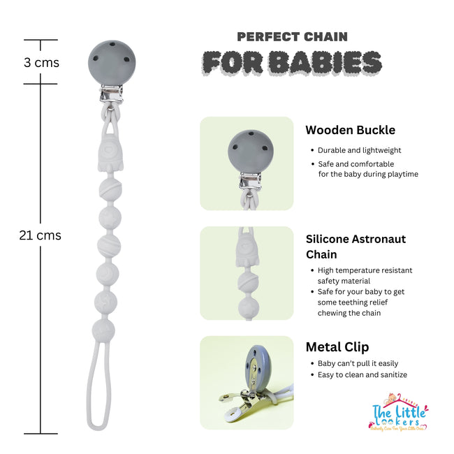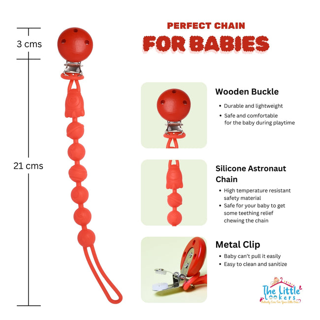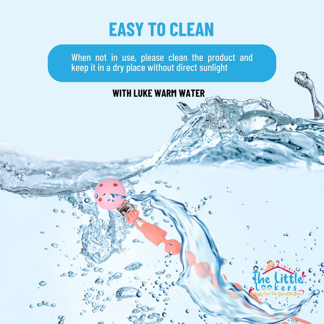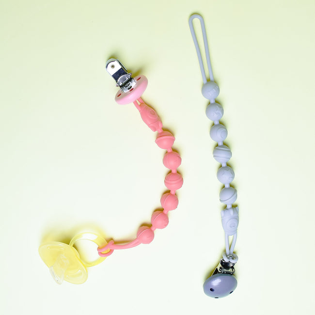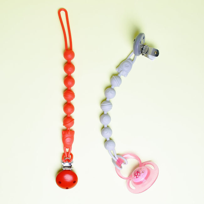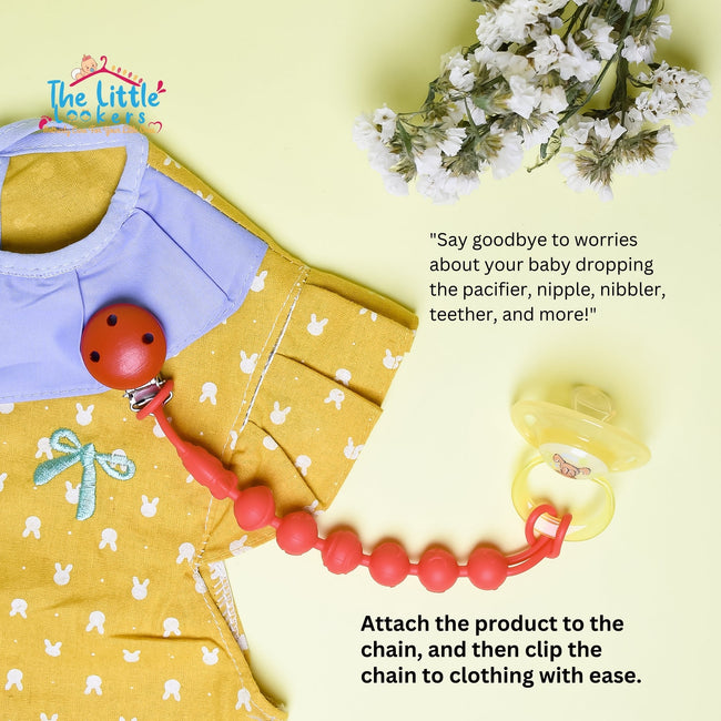 - SAFETY and QUALITY - Our pacifier clips are made from food-grade silicone, free of any harmful chemicals, ensuring they're safe for your baby to chew on. The clips themselves are crafted from high-quality natural wood, with silicone inserts to protect your baby’s clothing from damage. These pacifier clips double as teething toys, offering a safe and durable option for your little one.