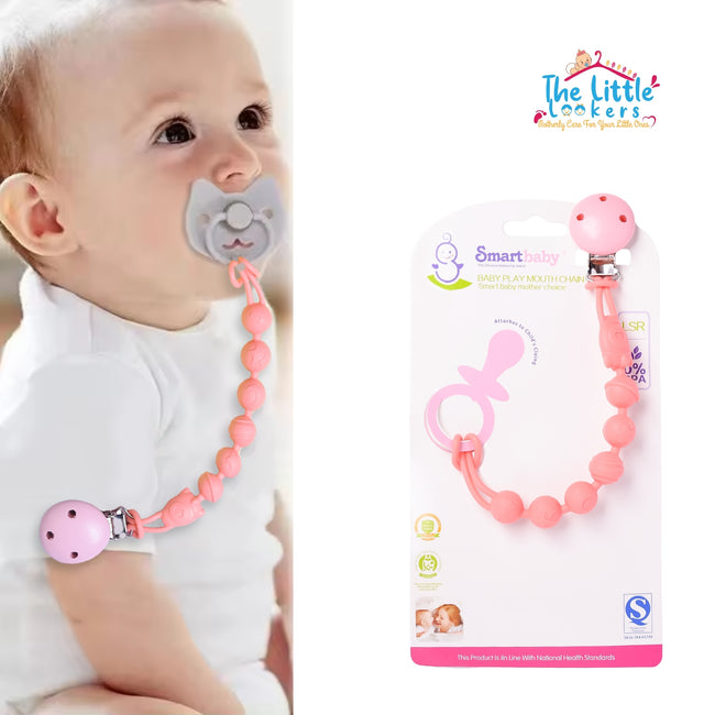 - EASY TO USE- Just bind the soother chains through the ring hole, and attach the other end to the baby's clothes to complete the installation. The pacifier holder clip is 9in long, no choking risk around the neck, and can effectively prevent the nipple from falling.