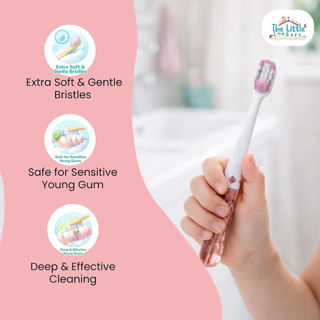 THE LITTLE LOOKERS Kids Toothbrush | Soft Bristles for Gentle Clean | Glitter Toothbrush | Easy To Hold Handle | Manual Toothbrushes for Babies/Kids/Toddlers (Blue)