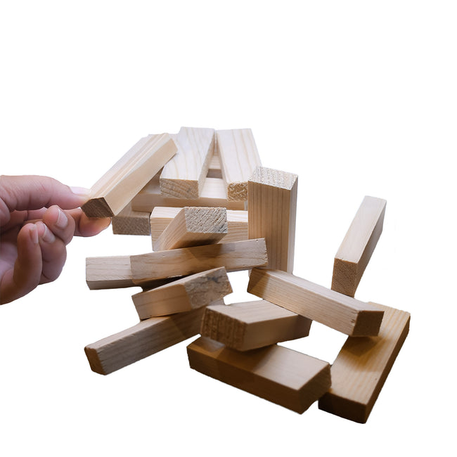 - Hand-Crafted Out of Pinewood – The wooden blocks are individually hand-crafted out of pinewood, which is an ideal wood for a stacking game. The pieces are solid with smooth edges, and easy to stack for the whole family.