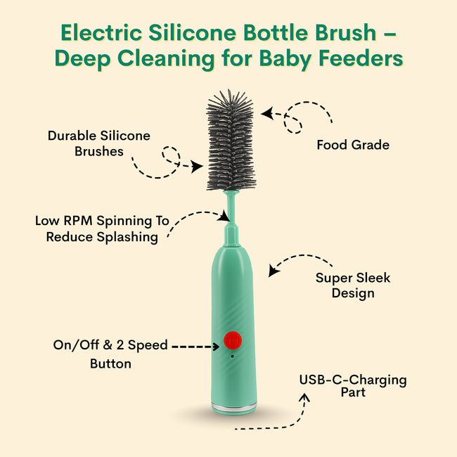 - Baby-Safe Soft Silicone Bristles – Gentle on bottles but tough on stubborn stains. Scratch-free, BPA-free & safe for daily use.