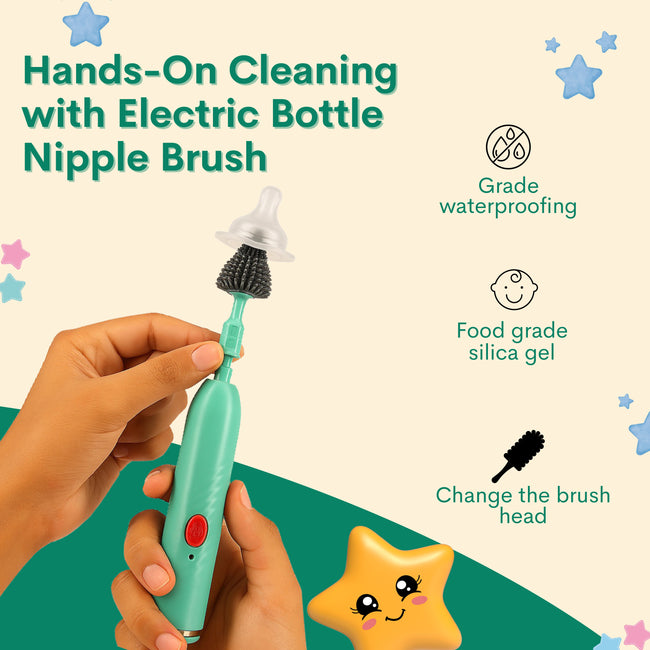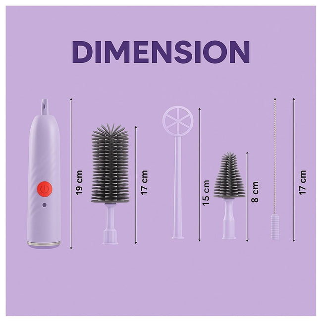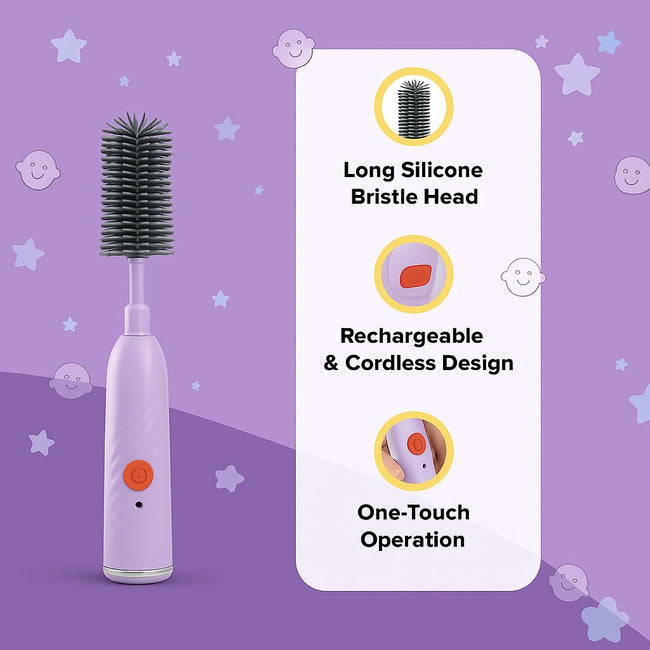 - 360° Deep Cleaning in Seconds – High-speed rotating brush easily removes milk residue, grease & odors from bottles, nipples, sippy cups, pacifiers & breast pump parts.