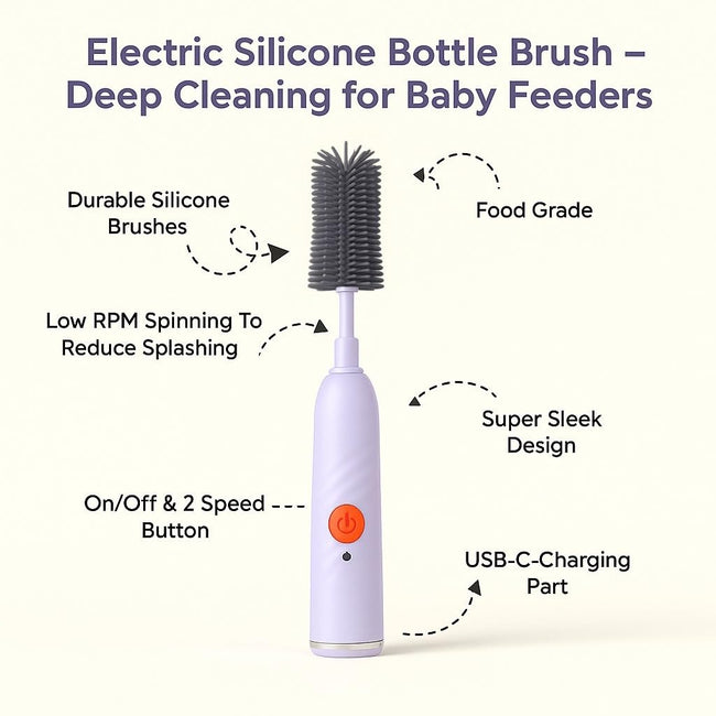 Keeping your baby’s feeding essentials clean and safe has never been easier! The Electric Baby Bottle Brush Cleaner is made for busy parents who want a fast, effortless, and hygienic way to clean bottles and accessories.