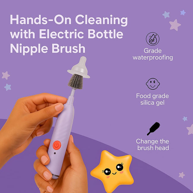 With its 360° high-speed rotation, this smart brush reaches every hidden corner of bottles and nipples, removing milk film, residue, and odor-causing bacteria in seconds.