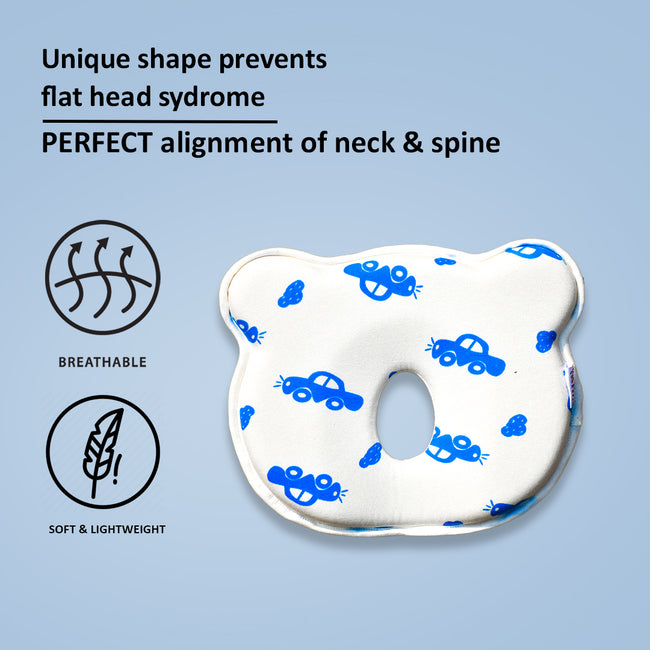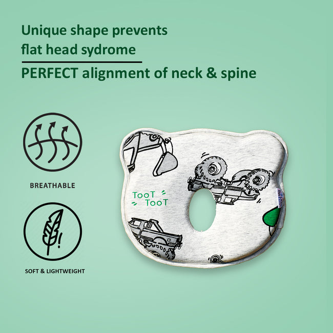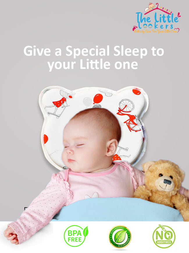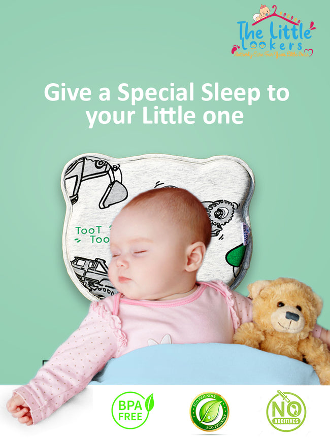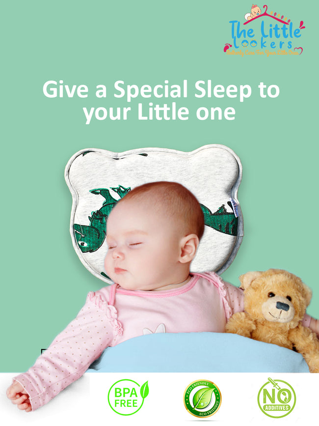 THE LITTLE LOOKERS memory foam pillow expertly designed with ergonomic headrest to provide utmost comfort and safety to the baby. Its unique shape prevents flat head syndrome and relieves pressure on the baby's head. It also aids in the development of proper posture. Allows the baby's neck and spine to be aligned more easily. It also facilitates the alignment of baby's neck and spine. It is made of lightweight breathable cotton fabric, and provides a relaxed sleeping experience to your little one.